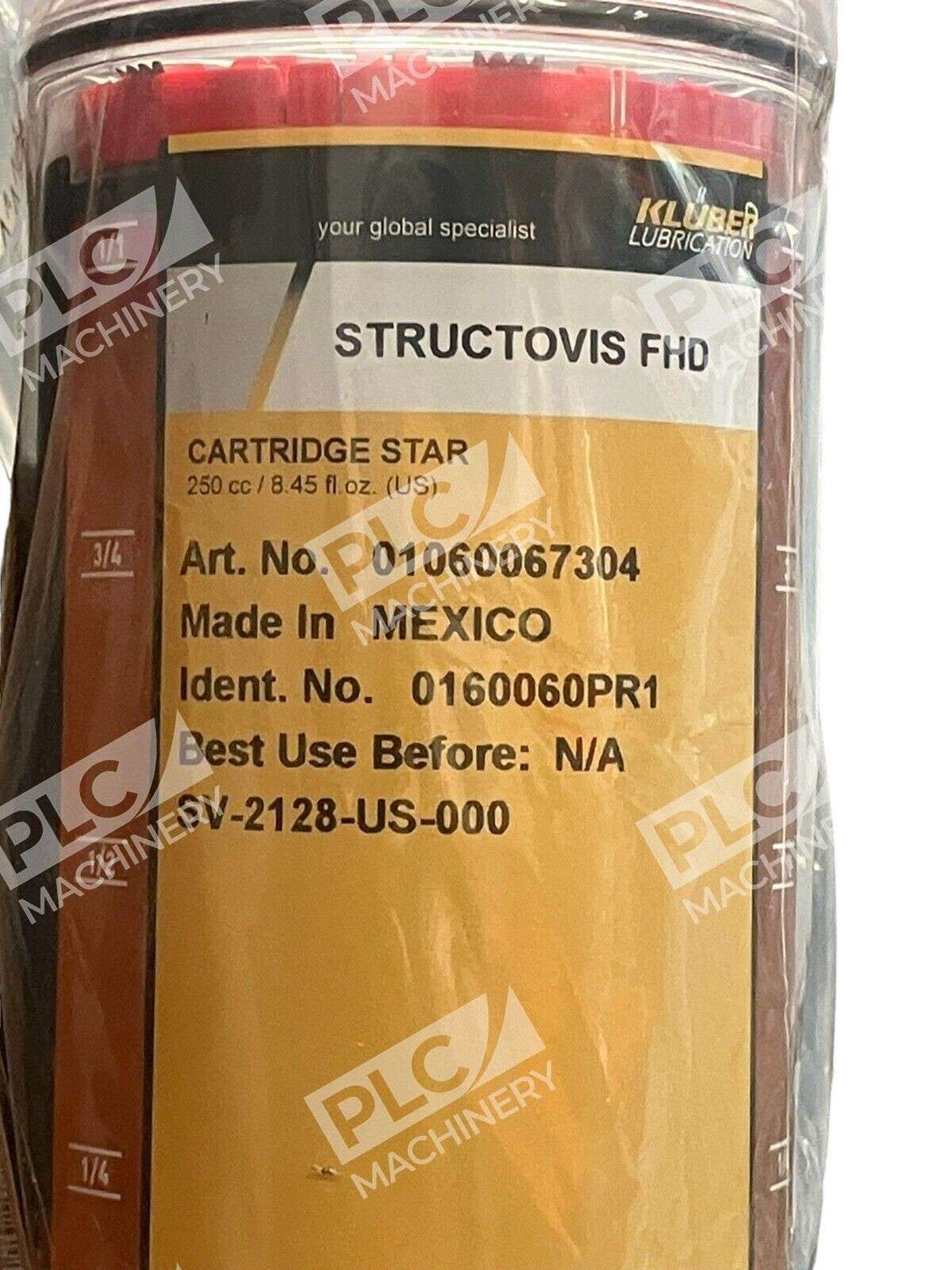 Kluber SV-2128-US-000 Cartridge Star Structovis FHD 01060067304 0160060PR1 New is a lubricant product from the brand Kluber. It comes in a cartridge form and has the part number 01060067304 0160060PR1. The product is designed for use in machining cen