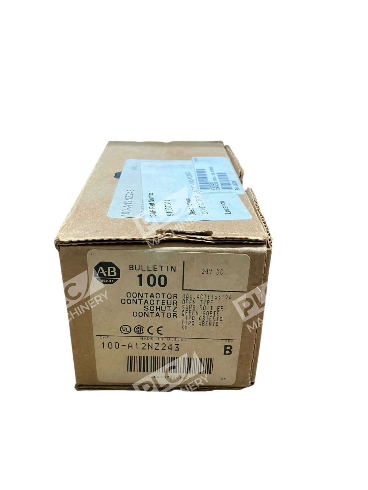 The Allen Bradley AB 24VDC Contactor 100-A12NZ243 /B is a high-quality industrial automation component designed by Allen-Bradley. This contactor is specifically designed for controlling 100 amps of electrical current at 24VDC, making it ideal for a variety of industrial automation and motion control applications. With its reliable brand reputation and sturdy construction, this contactor is a key component for ensuring smooth and efficient operation in various industrial settings.