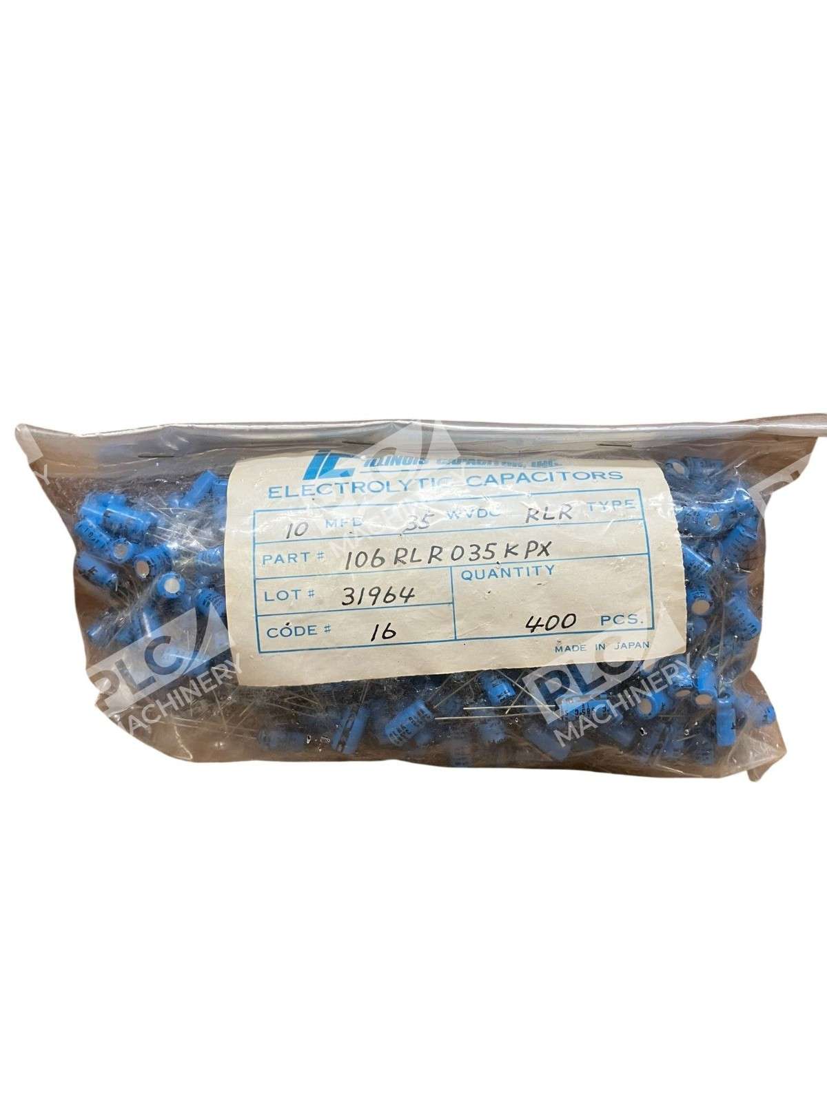 Illinois 106RLR035KPX 10µF 35V RLR Aluminum Electrolytic Capacitor Pack of 400 The Illinois 106RLR035KPX is a high-quality aluminum electrolytic capacitor designed for reliable performance in various electronic applications. This pack includes 400 capacitors, each with a capacitance of 10 microfarads (µF) and a voltage rating of 35 volts (V). Key Features Capacitance: 10 µF Voltage Rating: 35 V Package Type: Radial, Can Equivalent Series Resistance (ESR): 23.21 Ohms at 120 Hz Ripple Current: 46 mA at 120 Hz Operating Temperature Range: -40°C to 85°C Lifetime: 2000 hours at 85°C Lead Spacing: 2.00 mm Dimensions: 5.00 mm diameter x 13.00 mm height Applications These capacitors are suitable for a wide range of applications, including: Audio equipment Power supply filtering General-purpose electronic circuits The Illinois 106RLR035KPX capacitors are designed to deliver consistent performance and durability, making them an excellent choice for both professional and hobbyist projects.