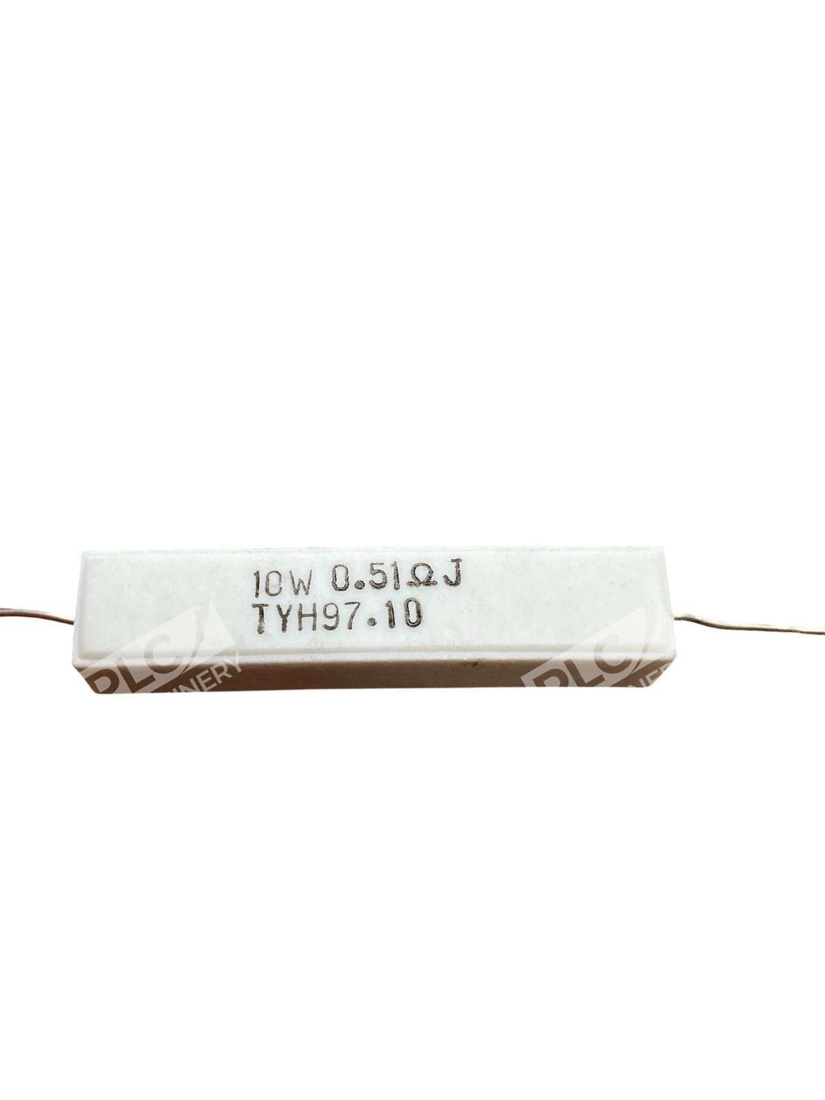 10W 0.51? Ceramic Cement Wirewound Resistor with Axial Leads (Model: TYH97.10) The 10W 0.51? Ceramic Cement Wirewound Resistor, model TYH97.10, is engineered for applications requiring precise resistance and robust performance. Its wirewound construction ensures accurate resistance values, while the ceramic cement casing provides excellent heat dissipation and durability. Key Features Power Rating: 10 watts Resistance: 0.51 ohms Tolerance: ±5% Construction: Wirewound resistor encased in ceramic cement Leads: Axial leads for easy PCB mounting Dimensions Body Length: Approximately 48 mm Body Width: Approximately 9.5 mm Body Height: Approximately 9.5 mm Lead Diameter: 0.8 mm Lead Length: 27 mm (each end) Applications This resistor is suitable for various applications, including: Power supplies Amplifiers Industrial controls Audio equipment Other electronic circuits requiring precise current regulation Performance Characteristics Temperature Coefficient: ±400 ppm/°C for resistance values between 0.01? and 20? Dielectric Withstanding Voltage: 1,000 VAC Short-Time Overload: Capable of withstanding 10 times the rated power for 5 seconds The TYH97.10 resistor combines precision, durability, and ease of integration, making it an ideal choice for demanding electronic applications.