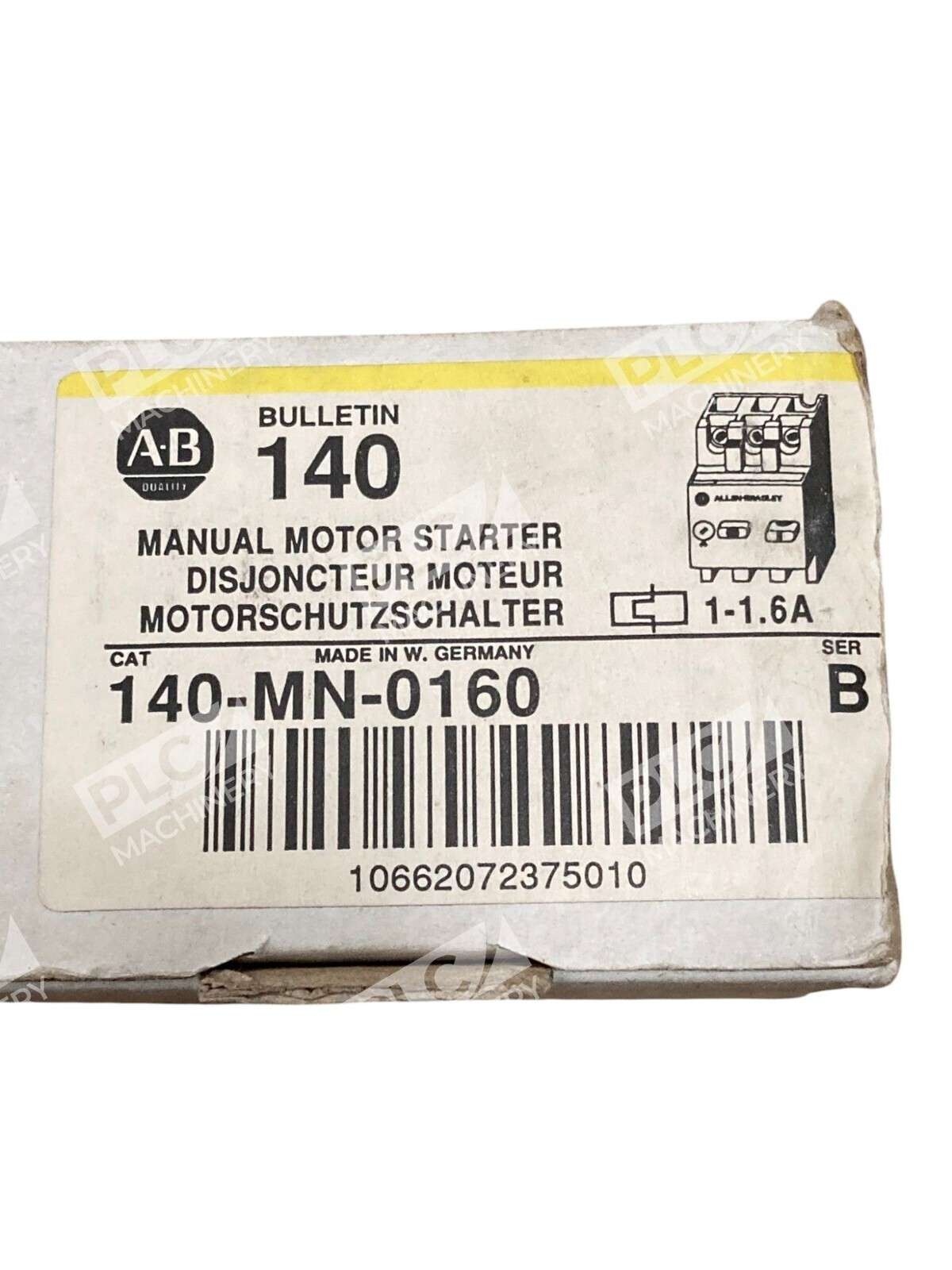 140-MN-0160 – Allen-Bradley – Series B Manual Motor Starter 1-1.6A Overload Protect