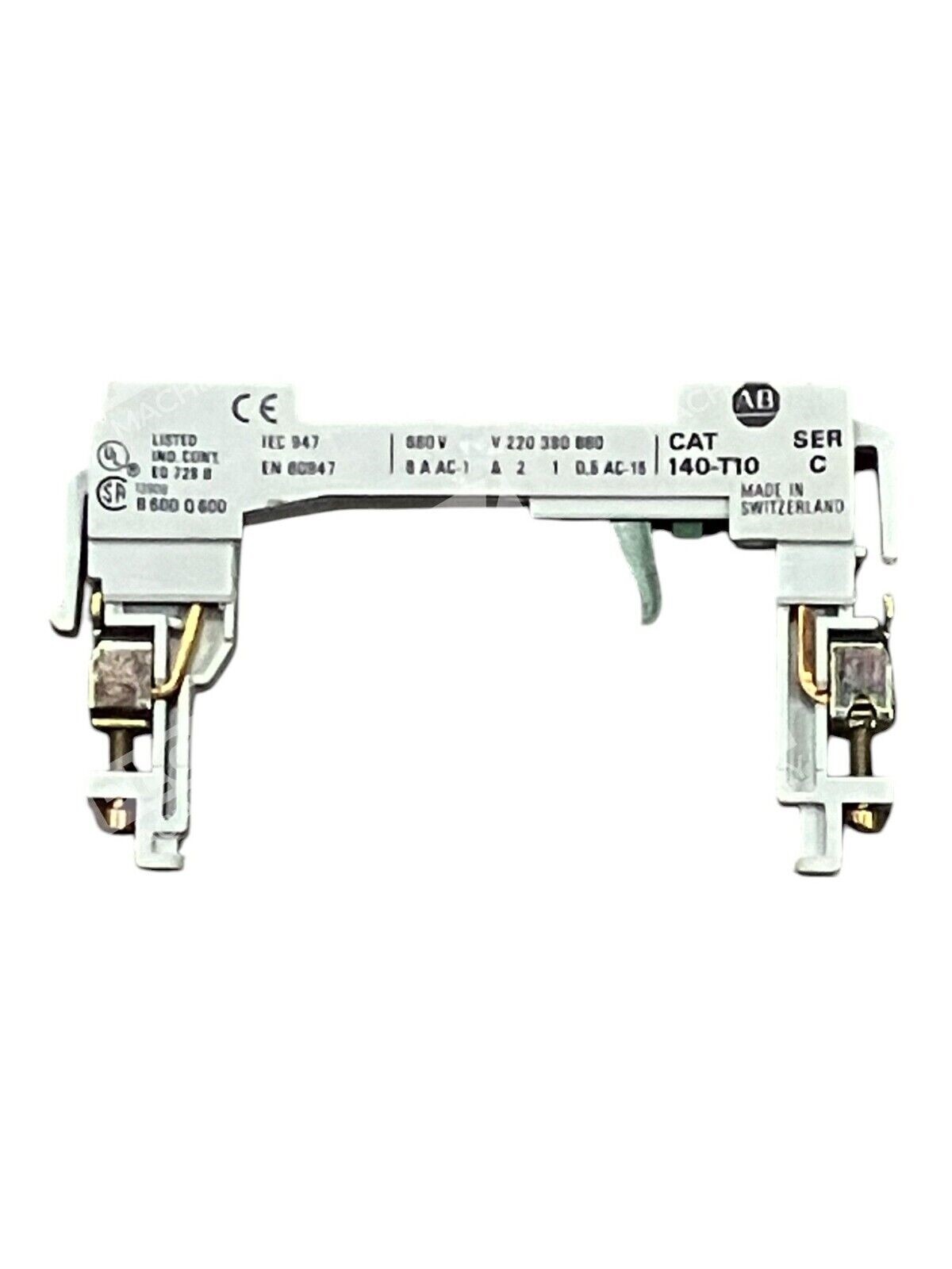 The product is an Allen Bradley Ser C Auxiliary Contact 140-T10/C in the INDUSTRIAL MRO brand. It is used as an auxiliary contact for industrial automation and motion control applications, specifically in manual starters and drives & starters.