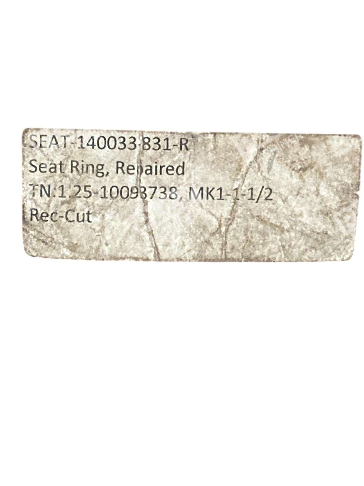 The product is a repaired ring seat for a pump shaft seal, specifically designed for the FLOWSERVE brand. The part number associated with the product is 140033-831-R, with a size of 1.25 inches and a material designation of MK1-1-1/2. This ring seat is a crucial component in maintaining the proper functioning of a pump system, ensuring a secure seal to prevent leaks and maintain hydraulic or pneumatic pressure.