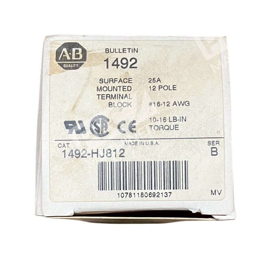The Allen Bradley AB 25A 12 Pole Surface Mounted Terminal Block 1492-HJ812 /B is a reliable and high-quality product from the brand INDUSTRIAL MRO. It is designed for industrial automation and motion control systems, making it an essential component for PLC processors and HMI systems. This terminal block allows for easy connection and organization of wires and cables, providing a secure and efficient solution for various industrial applications. Trust in the Allen Bradley brand for dependable automation components.