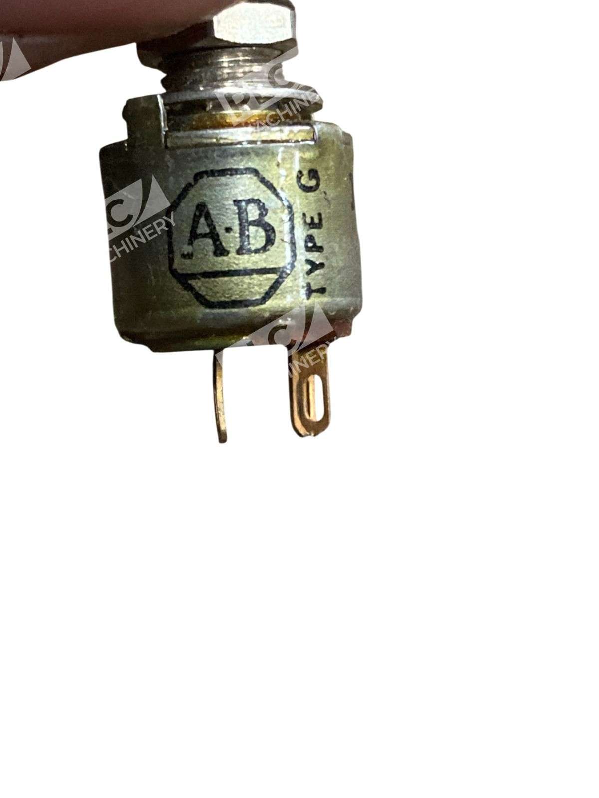 The Allen-Bradley 1599-2.5-MEG Type G Potentiometer is a high-quality variable resistor designed for precise control in electronic circuits. Key Features Resistance Value: 2.5 Megohms, suitable for applications requiring high resistance. Power Rating: 0.5 Watts at 70°C, ensuring reliable performance under standard operating conditions. Temperature Range: Operates effectively between -55°C and +120°C, accommodating a wide range of environmental conditions. Construction: Features a hot-molded carbon element, providing durability and consistent performance. Design: Compact 1/2-inch diameter, making it suitable for applications where space is limited. Sealing: Incorporates an “O” ring seal between the shaft and bushing, ensuring water-tightness up to 15 psi, enhancing its suitability for environments exposed to moisture. Applications The 1599-2.5-MEG Type G Potentiometer is ideal for various applications, including: Audio equipment requiring precise volume control. Industrial machinery for adjusting operational parameters. Instrumentation circuits needing accurate resistance adjustments. Additional Specifications Voltage Rating: 350 volts maximum working voltage, or as determined by Emax. = ?(P*R), whichever is less. Mechanical Rotation: 295 degrees ±3 degrees, allowing for fine-tuned adjustments. Mounting: Panel mount with a standard 1/4-inch diameter bushing, facilitating easy installation. The Allen-Bradley 1599-2.5-MEG Type G Potentiometer combines precision, durability, and versatility, making it a reliable choice for engineers and designers in various electronic applications.