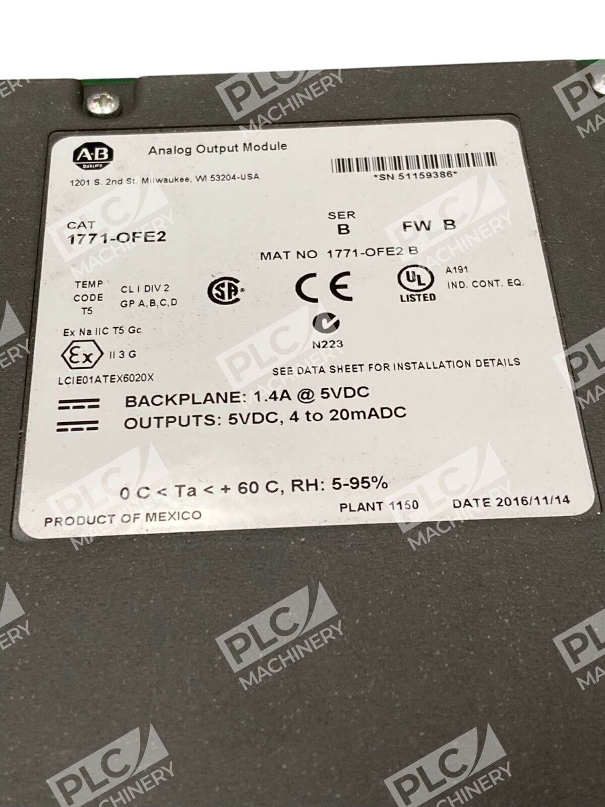 1771-OFE2 – Allen-Bradley – Analog Output Module 420mA 5VDC PLC A-B Ser B FW B
