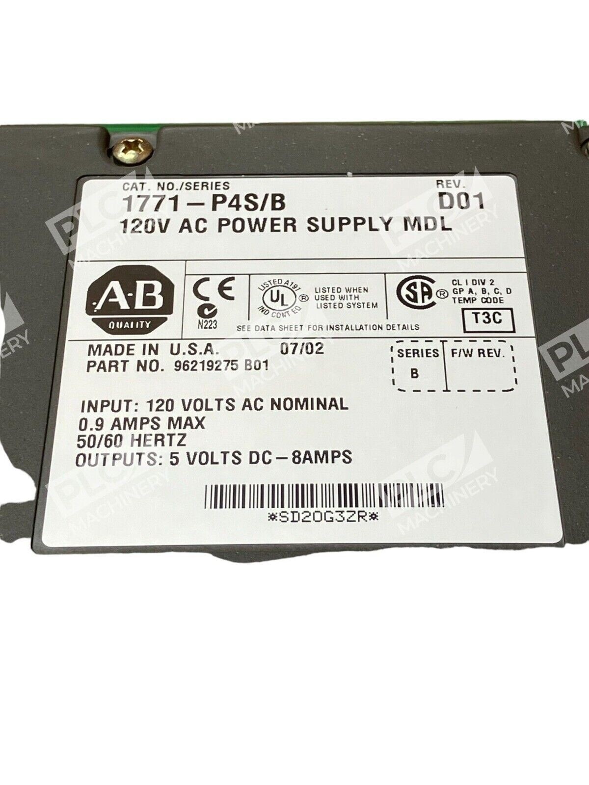This Allen-Bradley 1771-P4S /B module is a reliable power supply for your PLC-5 controller platform. It is designed and manufactured in the United States, ensuring high-quality performance. The module can handle 120V AC power and is perfect for use in industrial automation and motion control applications.