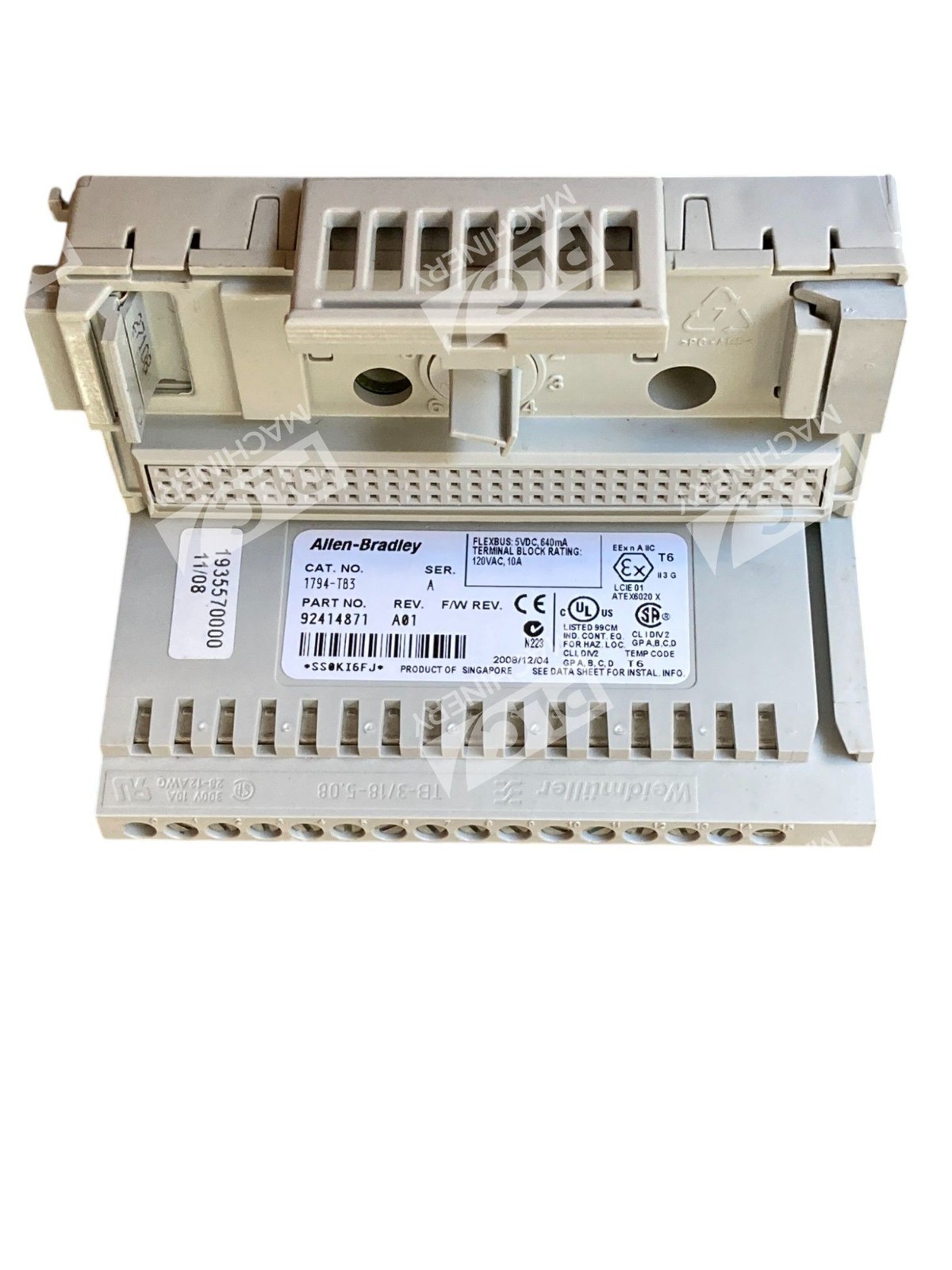 The Allen Bradley AB 92414871 Terminal Base 1794-TB3/A is a set of two PLC peripheral modules designed for industrial automation and motion control systems. Manufactured by Allen Bradley, a trusted brand in the industry, these modules provide a reliable connection point for PLC input and output devices. The model 1794-TB3/A ensures compatibility with a variety of PLC systems, making it an essential component for efficient automation processes in various industrial settings.