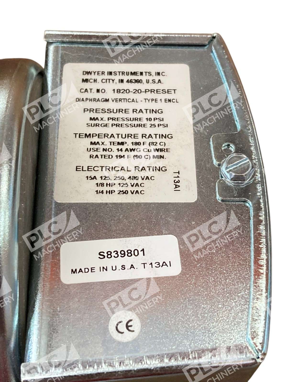 The Dwyer Instruments 1820-20-PRESET Pressure Switch is a metal pressure switch designed for interior use. It features a vertical orientation, on/off operation method, and a differential switch type. This pressure switch is suitable for instruments and has a stainless steel finish. Made in the United States by the trusted brand Dwyer, this switch is compatible with wire gauges ranging from 1-5 AWG and has a screw termination type for easy installation. With a coil voltage of 1-10 V and ideal for AC current type, this pressure switch is a reliable choice for various industrial applications.