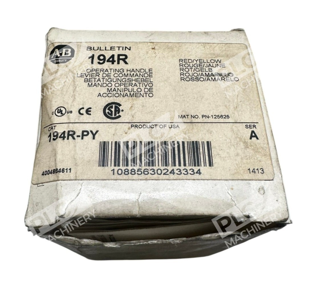The 194R-PY /A Allen-Bradley Red/Yellow Operating Handle is a replacement part for the Allen-Bradley controller platform Automate. This operating handle, specifically the model 194R-PY, is designed for industrial automation and motion control systems. It is crucial for ensuring smooth operation and functionality of the PLC processors in various industrial settings where precise control and motion are required. With the trusted Allen-Bradley brand behind it, this operating handle provides reliability and consistency for your automation needs.