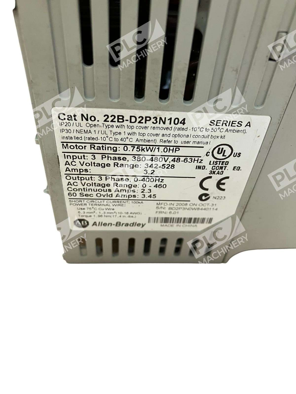 22B-D2P3N104 – Allen-Bradley – PowerFlex 40 AC Drive 0.75 kW / 1.0 HP (FRN: 6.01)