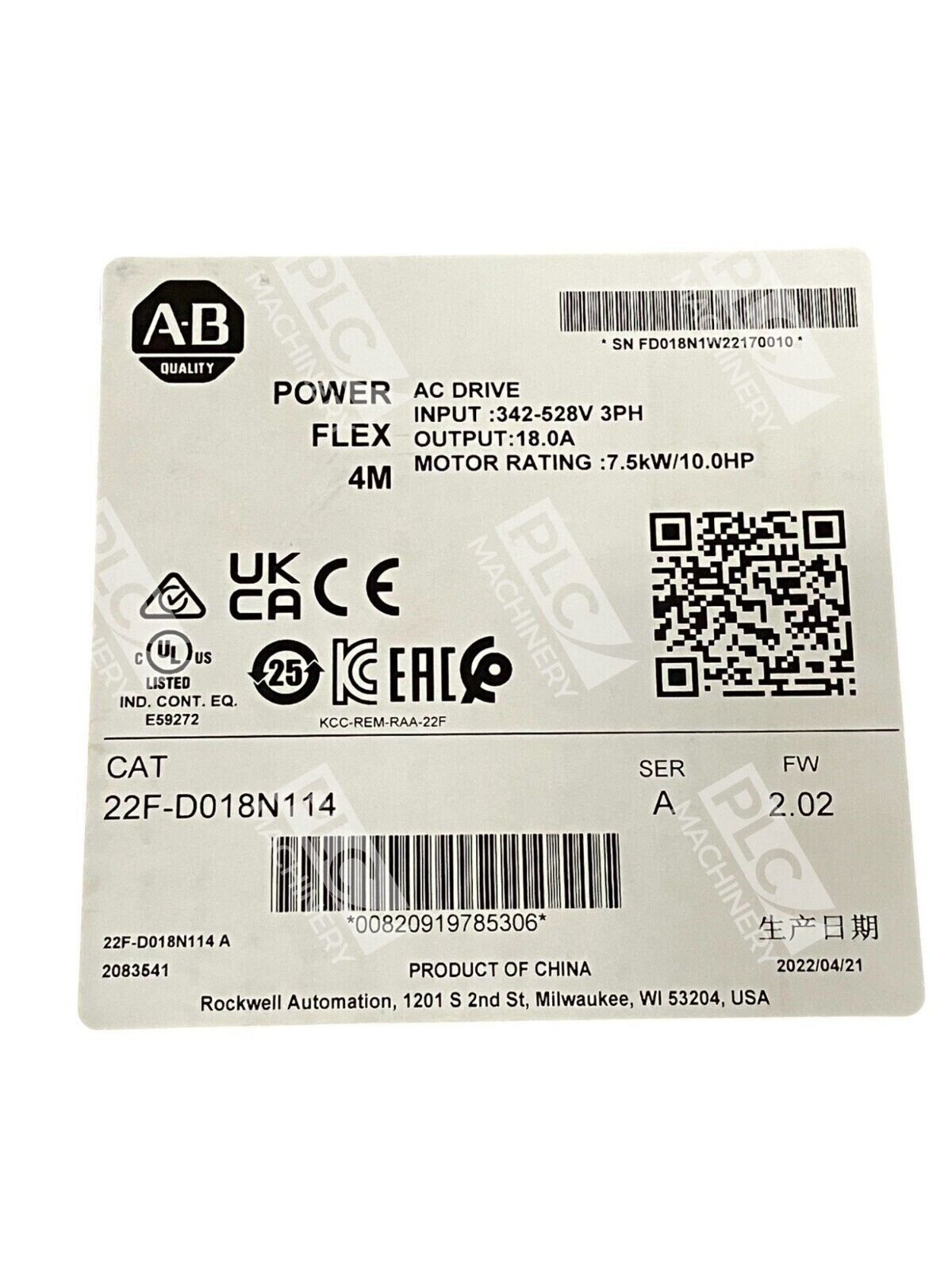 The Allen-Bradley PowerFlex 4M AC Drive 22F-D018N114/A is a versatile industrial automation solution designed for general purpose applications. It operates with an input voltage of 480V and is manufactured by Allen-Bradley.
