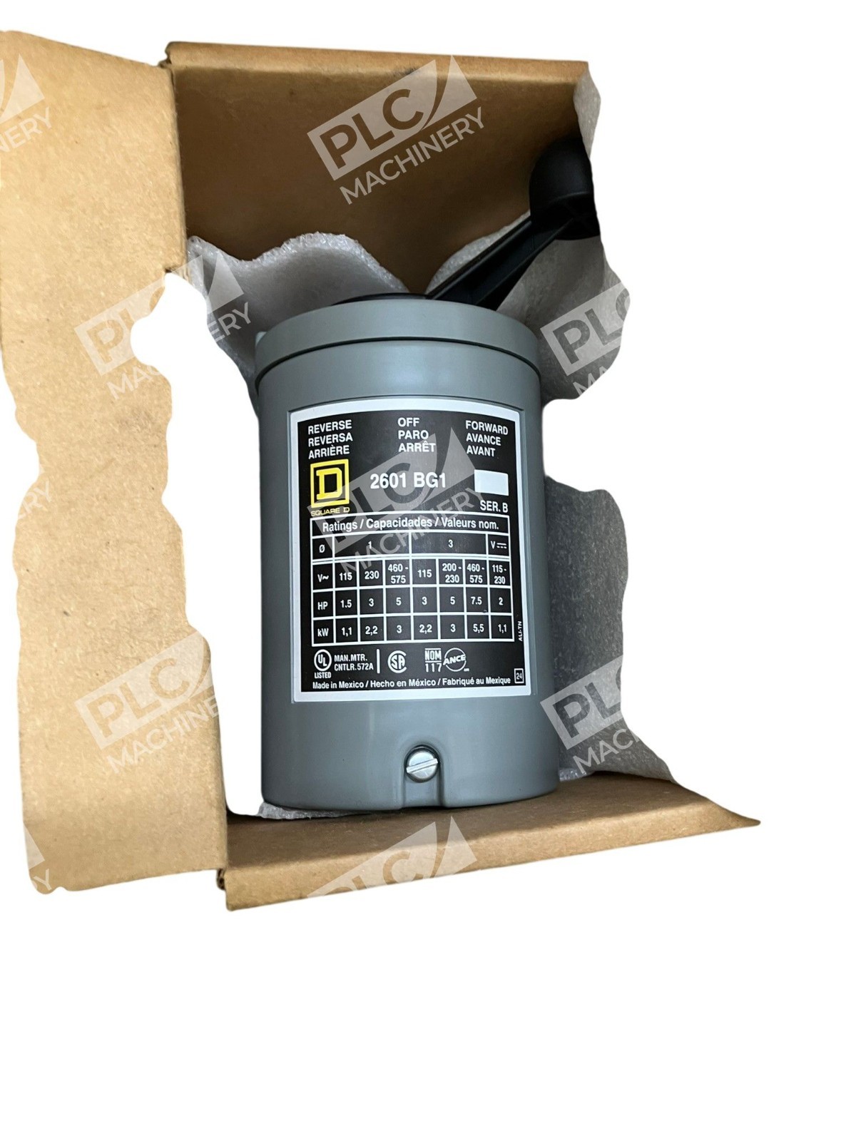 The 2601BG1 Square D Reversing Drum Switch Forward-Off-Reverse is a high-quality electrical switch designed for industrial use. This specific switch is made by the reputable brand Square D and is manufactured in the United States. It is designed for forward, off, and reverse functionality, making it ideal for controlling the direction of machinery or equipment. With its sturdy construction and reliable performance, this reversing drum switch is a key component for ensuring the smooth operation of various industrial processes.