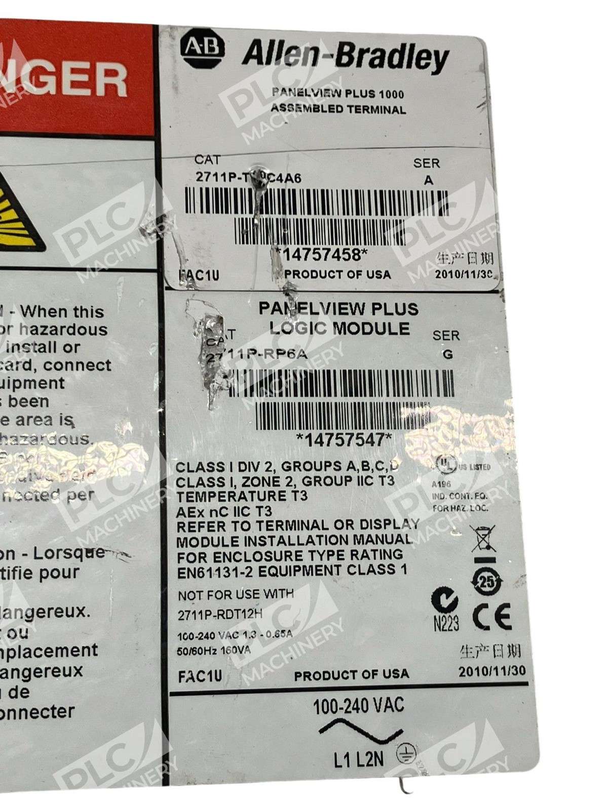 2711P-T10C4A6 + 2711P-RP6A – Allen-Bradley – 2711P-RP6A /G PanelView Plus 1000 HMI Logic Module
