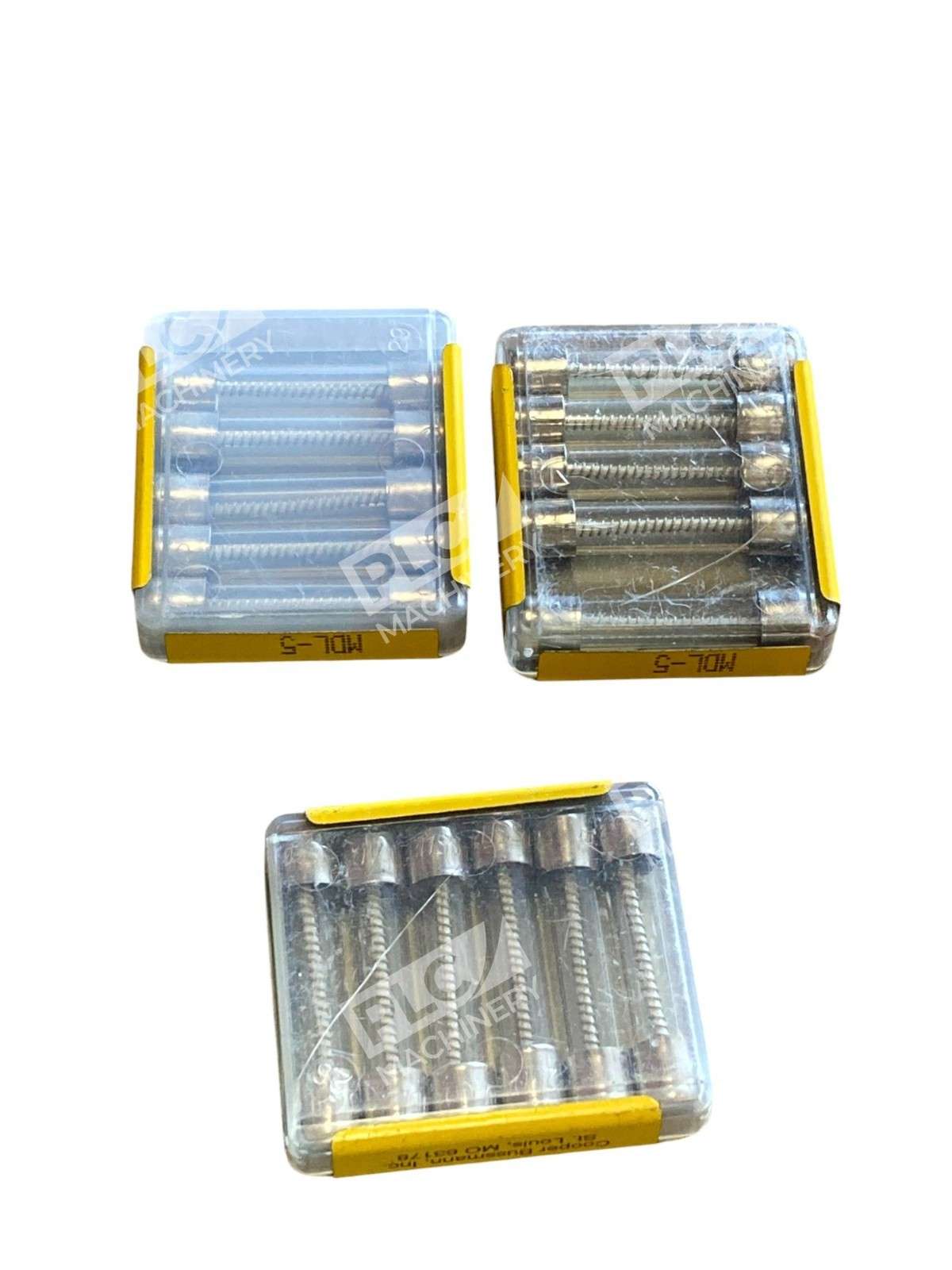 The product consists of three boxes containing a total of six Bussmann MDL5 5 Amp 250 VAC glass tube fuses. These fuses are designed for interior use and feature a snap-in mounting style with a clear color and D-type cartridge fuse type. The fuses have a time-delay/slow-blow fuse speed, suitable for AC current type. With a height of 4 inches and two poles, these electrical fuses are ideal for providing reliable protection to electrical equipment and supplies in industrial and business settings.