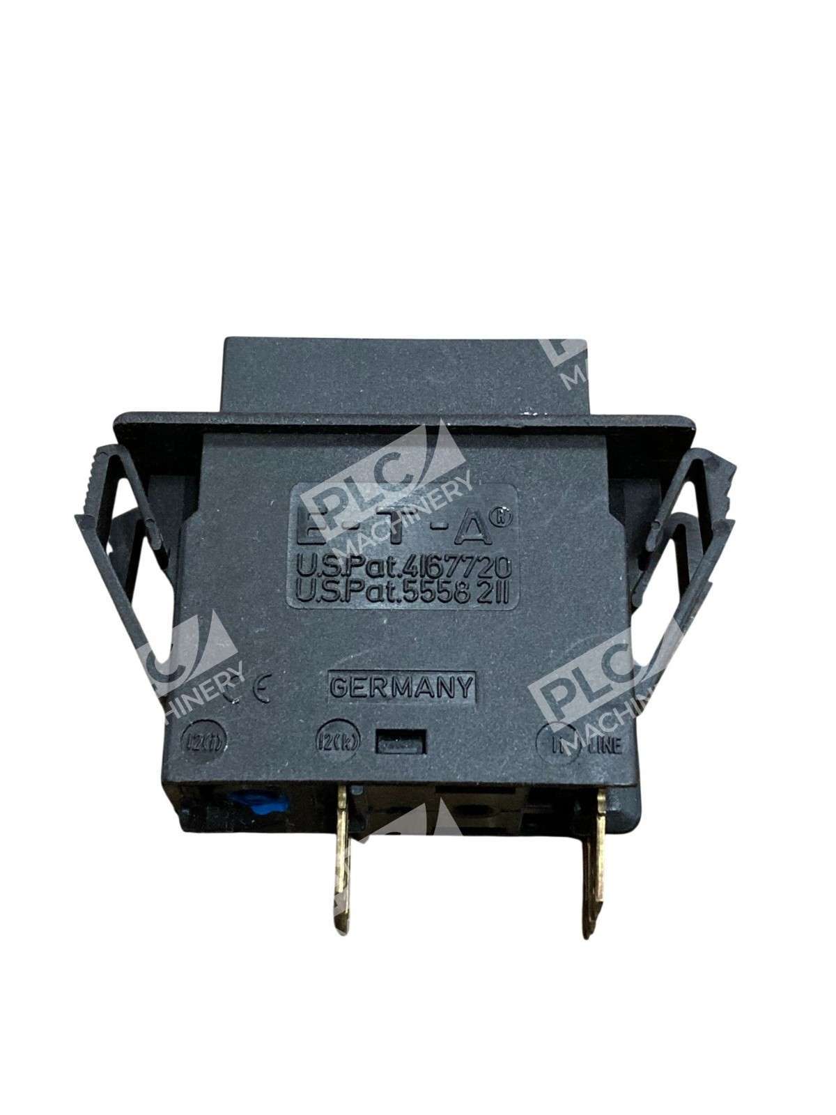 E-T-A 3120-F323-P7T1-W12DB4 10A 2-Pole Thermal Breaker with Rocker Switch The E-T-A 3120-F323-P7T1-W12DB4 is a dual-function device combining a thermal circuit breaker and a rocker switch, designed to provide reliable overcurrent protection and efficient circuit control in a single, compact unit. Key Features Dual-Pole Protection: Offers comprehensive safeguarding for both poles, ensuring enhanced safety and reliability in electrical circuits. 10A Current Rating: Suitable for applications requiring a 10-ampere current capacity, accommodating a wide range of electrical devices and systems. Thermal Trip Mechanism: Utilizes a thermal bimetal trip element that responds to overcurrent conditions by interrupting the circuit, preventing potential damage. Rocker Switch Actuation: Features an integrated rocker switch for straightforward ON/OFF control, facilitating user-friendly operation. Snap-In Mounting: Designed for easy panel installation with a snap-in frame, streamlining the mounting process and reducing assembly time. Blade Terminals: Equipped with P7 blade terminals for secure and efficient electrical connections. Technical Specifications Voltage Rating: AC 240 V; DC 50 V Current Rating: 10 A Number of Poles: 2 Mounting Method: Snap-in frame Terminal Design: Blade terminals (P7) Actuation: Rocker switch Operating Temperature Range: -30°C to +60°C Interrupting Capacity: 100 A Applications The E-T-A 3120-F323-P7T1-W12DB4 is ideal for various applications, including: Industrial equipment control Medical technology Household, hobby, and garden equipment Lighting technology Telecom and datacom systems Watercraft and vehicles Its combination of circuit protection and switching functionality makes it a versatile and efficient solution for managing electrical circuits across diverse industries.