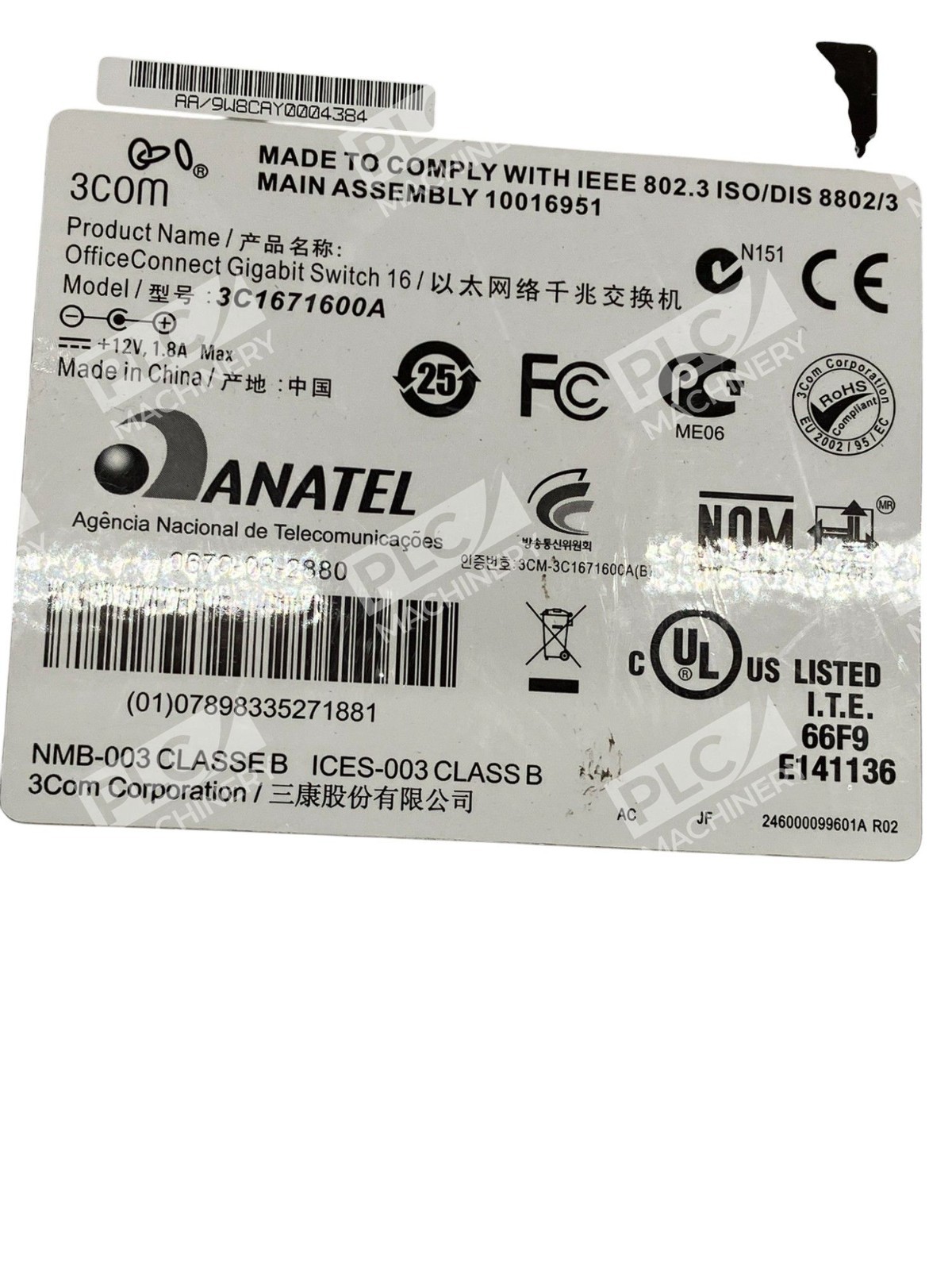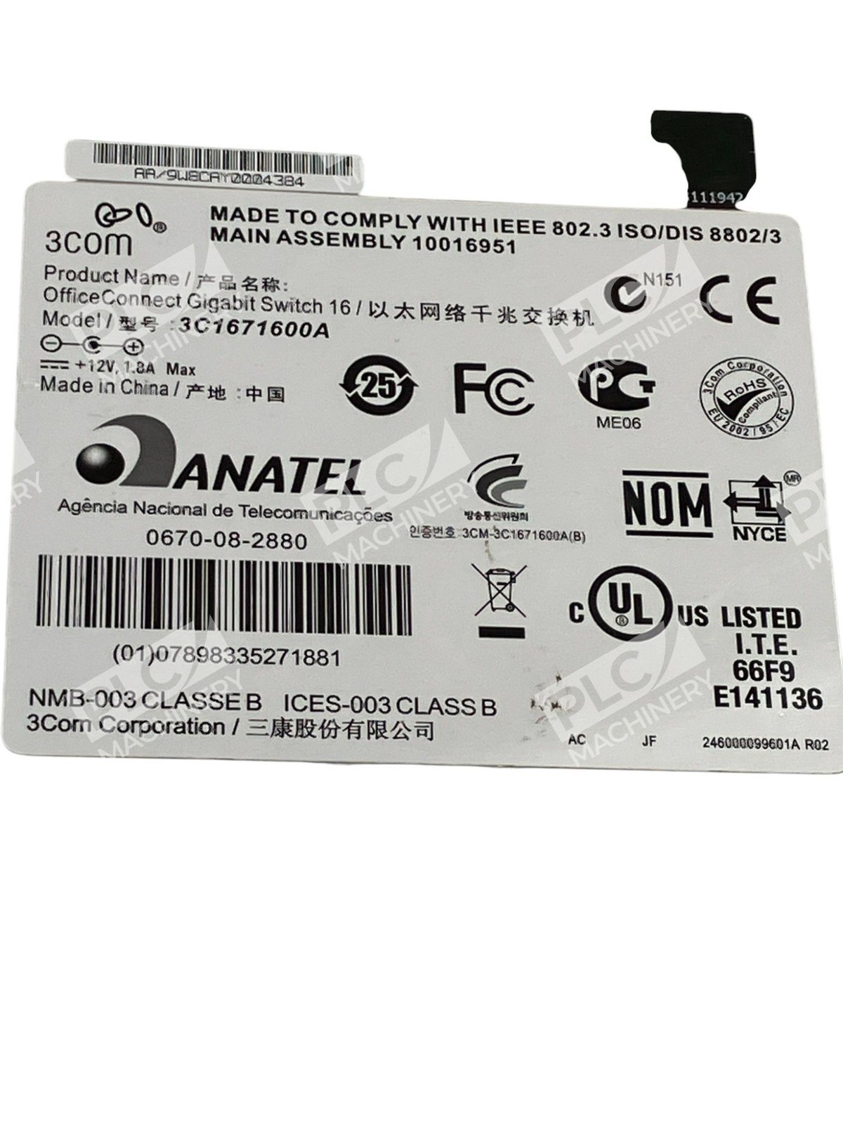3Com OfficeConnect Gigabit Switch 16 Without AC Adapter 3C1671600A