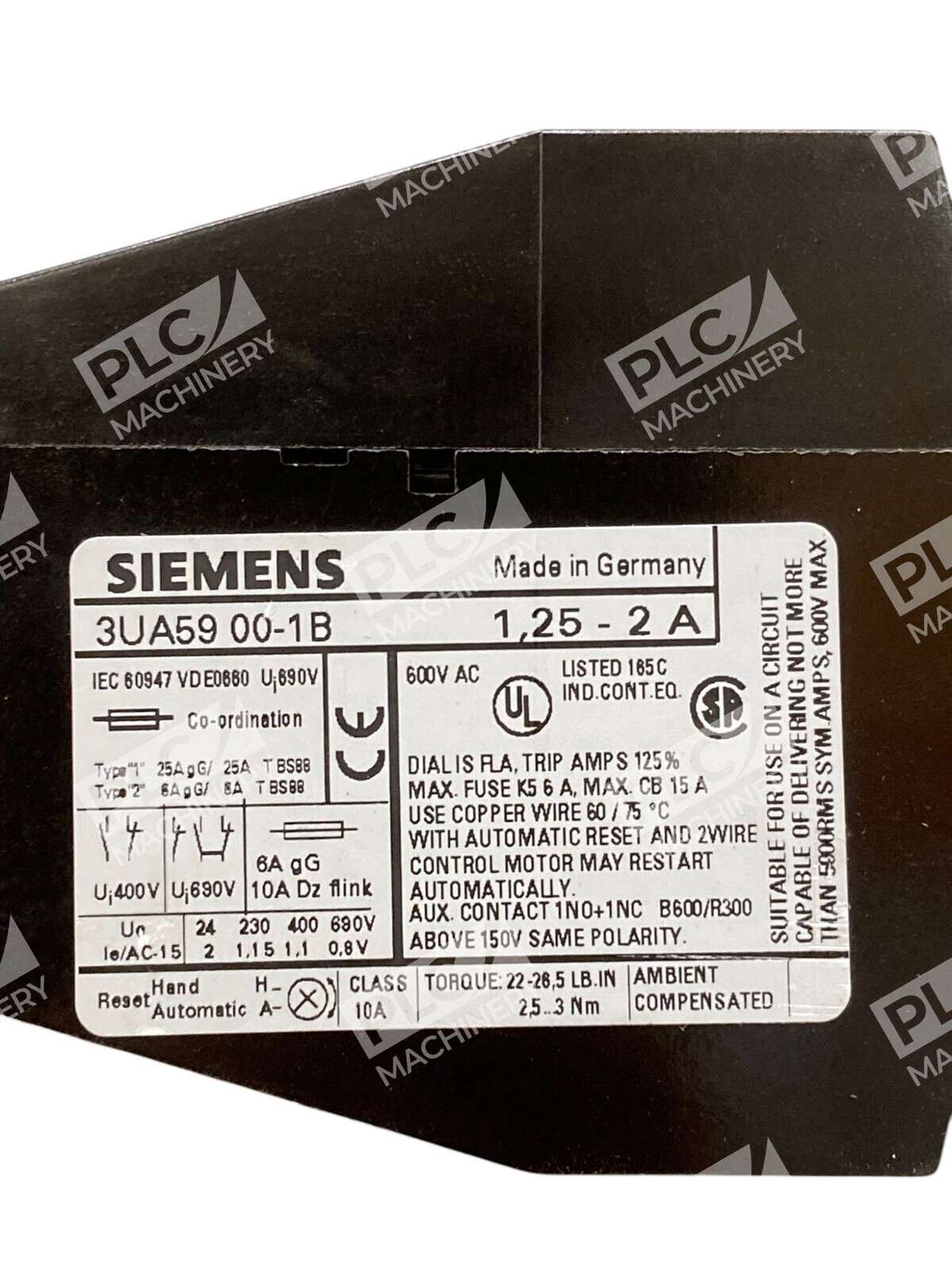 The Siemens 3UA5900-1B 1.25-2A Overload Relay is a high-quality electrical component designed for industrial and commercial applications. This relay, manufactured by Siemens, is specifically designed to provide overload protection for electrical devi