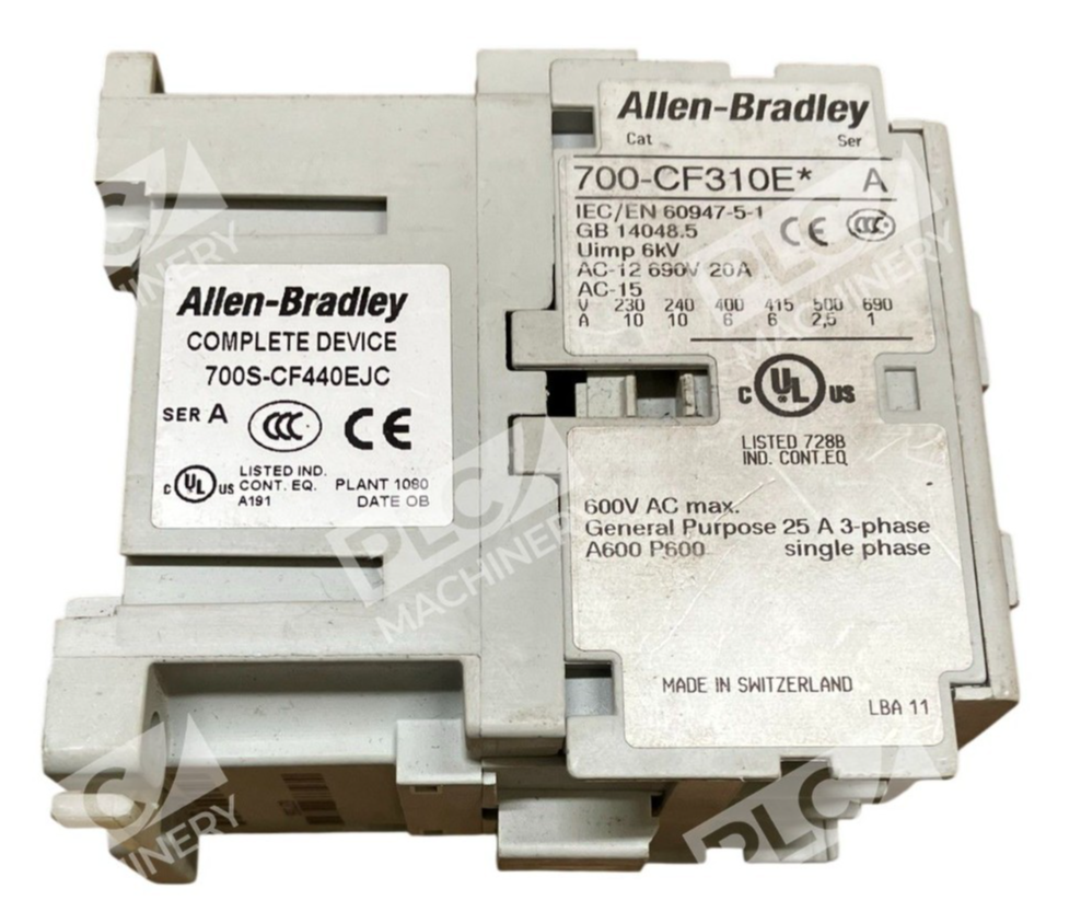 The Allen-Bradley 700S-CF440EJC /A Safety Relay is a high-quality product manufactured by Allen-Bradley in Switzerland. This safety relay, along with the 700-CF310E* /A Base, ensures reliable protection and control for electrical equipment and supplies in industrial settings. With a maximum voltage rating of 600V, this product is designed to provide efficient and safe operation for various applications. Trust in the Allen-Bradley brand for dependable relay solutions for your business needs.