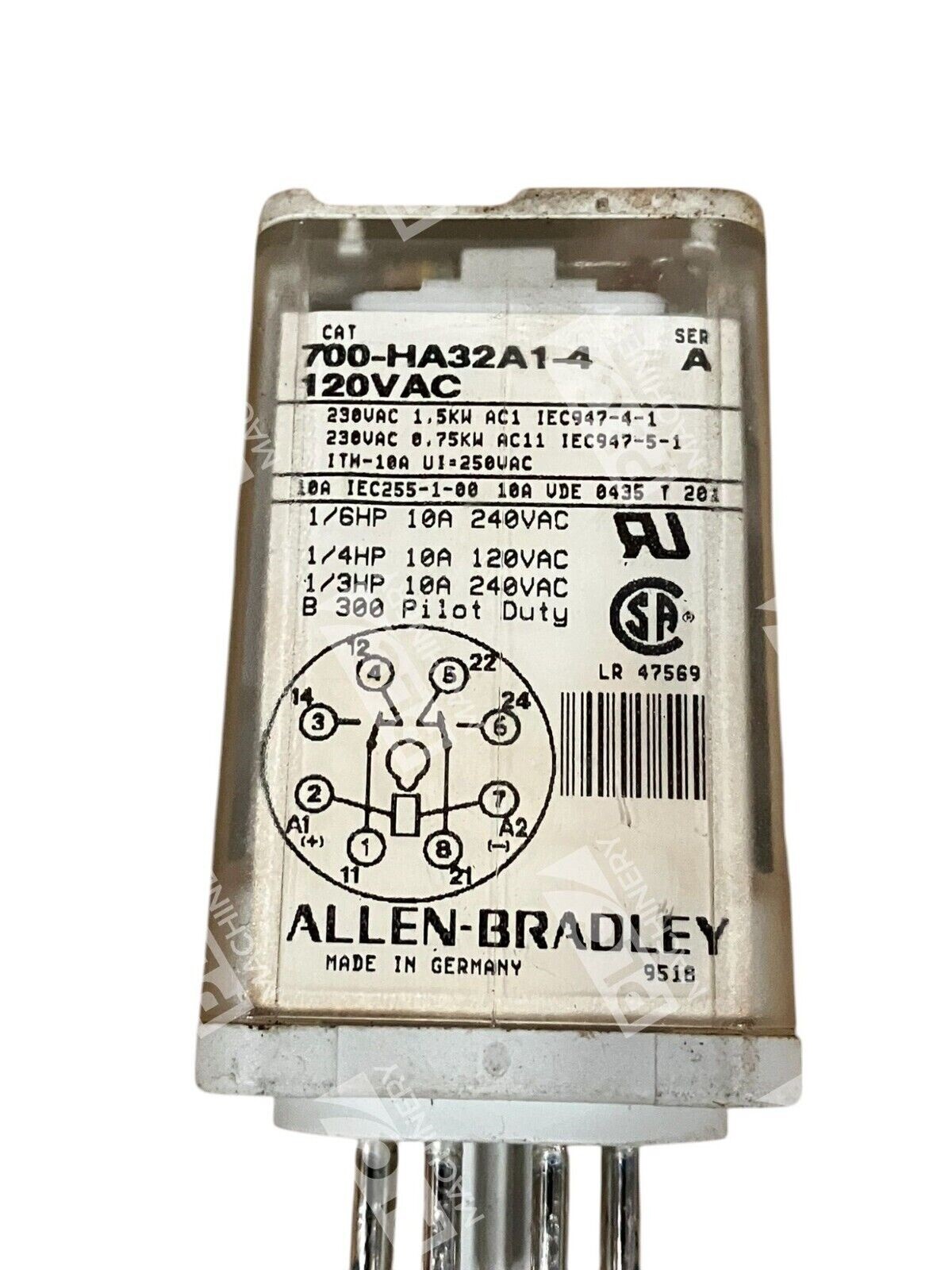 The product is an Allen Bradley 2 Pole 10A 120VAC Relay with the model number 700-HA32A1-4/A. It is designed to control electrical circuits by opening and closing contacts in response to a signal. The relay has two poles, allowing it to control two separate circuits, and can handle up to 10 amps of current at 120 volts AC.