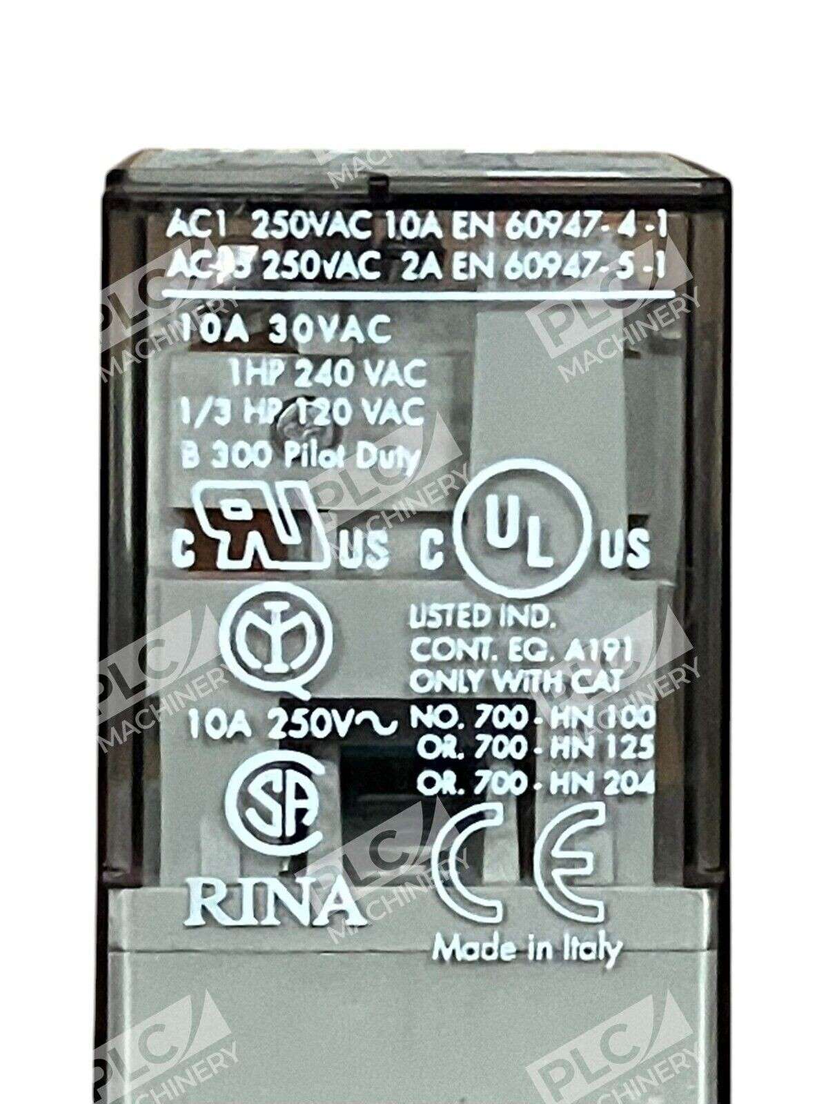 The Allen-Bradley 700HA32Z24 8-Pin relay with base is capable of handling 10A at 30VAC. It is designed for industrial automation and motion control applications, such as PLC processors and HMIs.