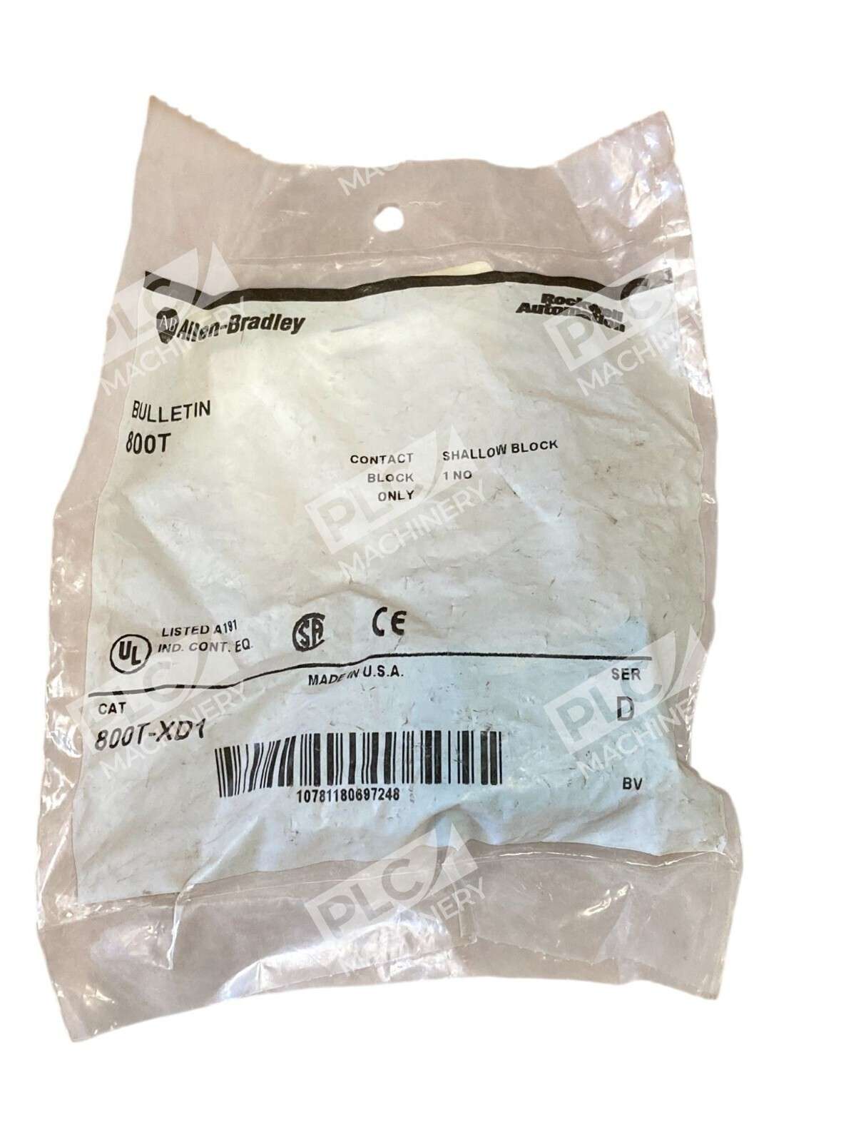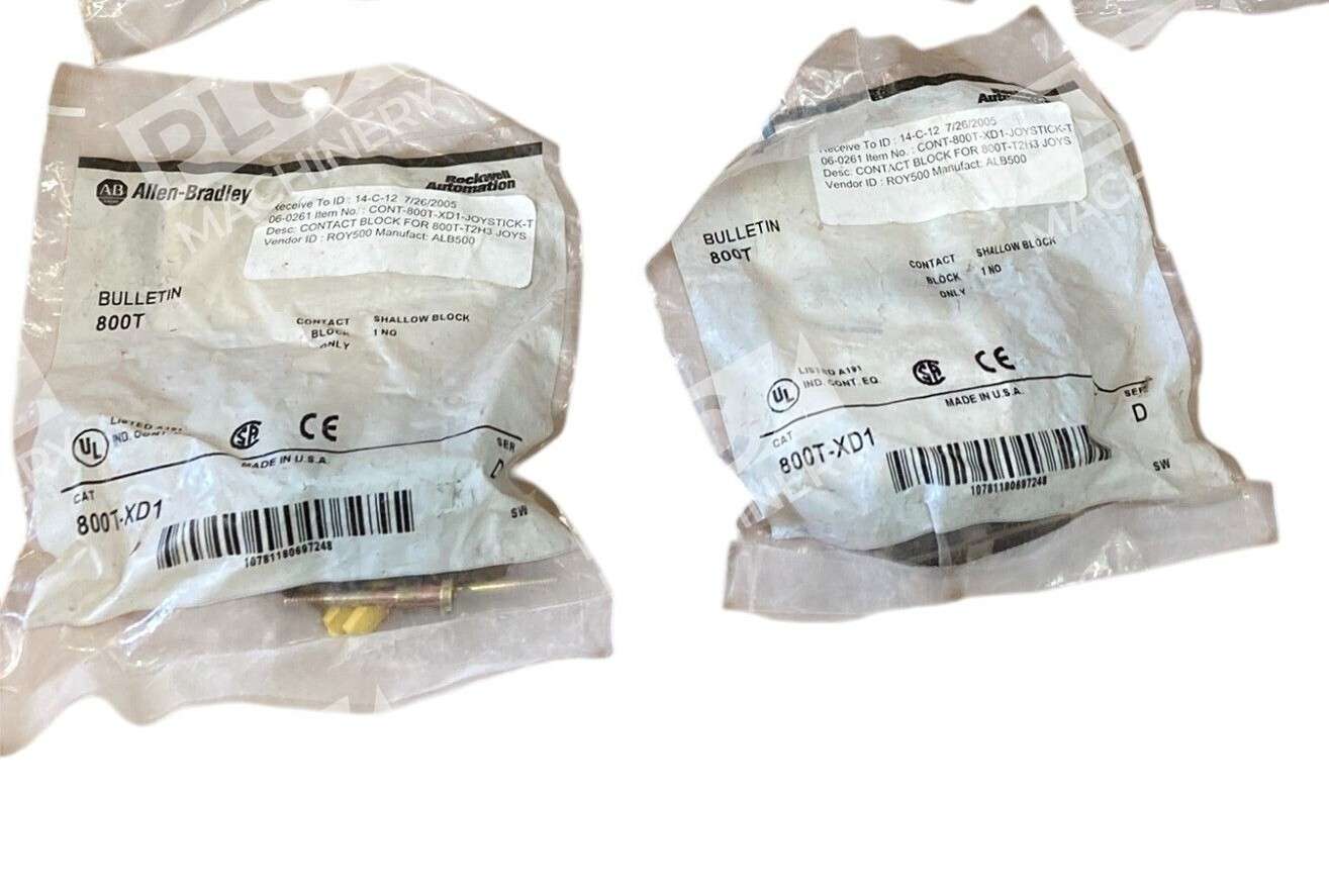 The product is a lot of 2 Allen Bradley AB 1 NO Shallow Contact Blocks 800T-XD1. These contact blocks are designed for use with Allen Bradley 800T series contactors. They are rated for 1 normally open contact and are shallow in depth, making them sui