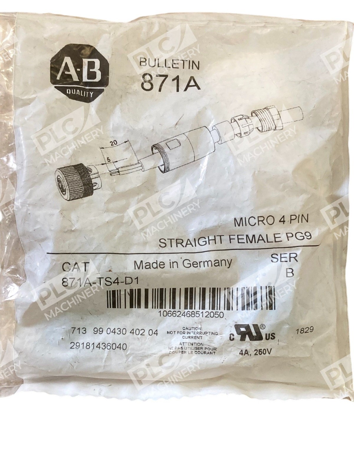 The Allen-Bradley 871A-TS4-D1 is a micro 4-pin straight female terminal with a PG9 chamber, manufactured in Germany. This product is designed for use in industrial and business applications, providing a reliable and high-quality connection solution. As a trusted brand in the industry, Allen-Bradley ensures that this terminal meets the standards for performance and durability, making it a valuable component for various systems and equipment.