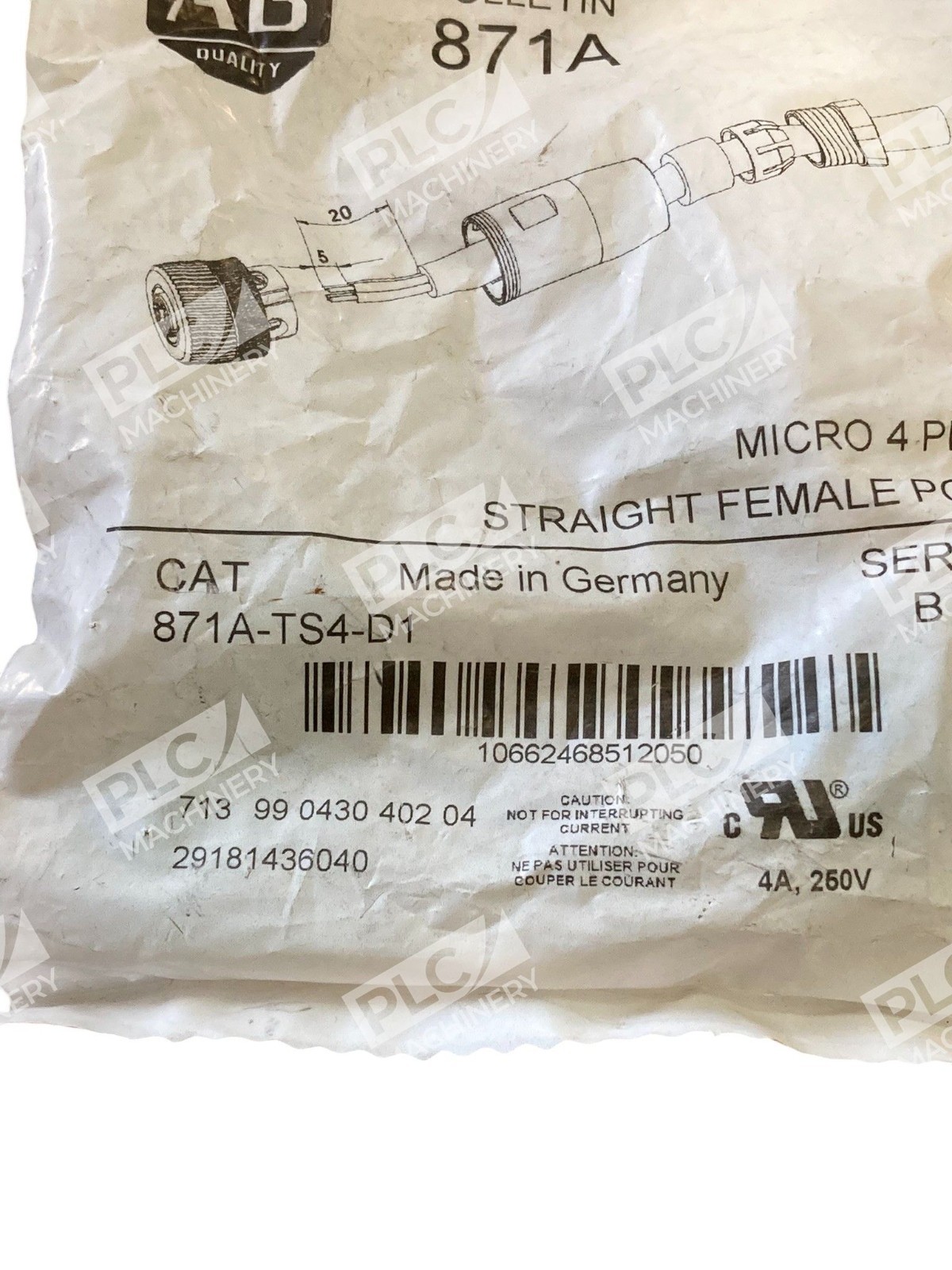 871A-TS4-D1 /B Allen-Bradley 4-Pin Straight Female Terminal
