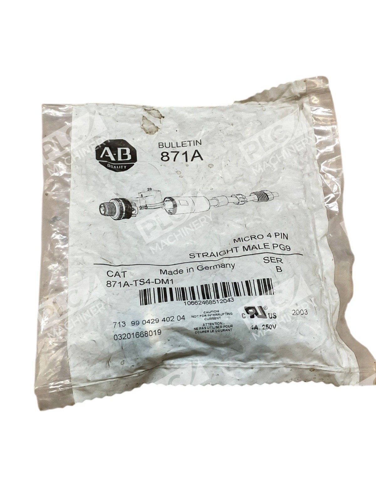 871A-TS4-DM1 Allen-Bradley M12 Connector 4-Pin Straight Male