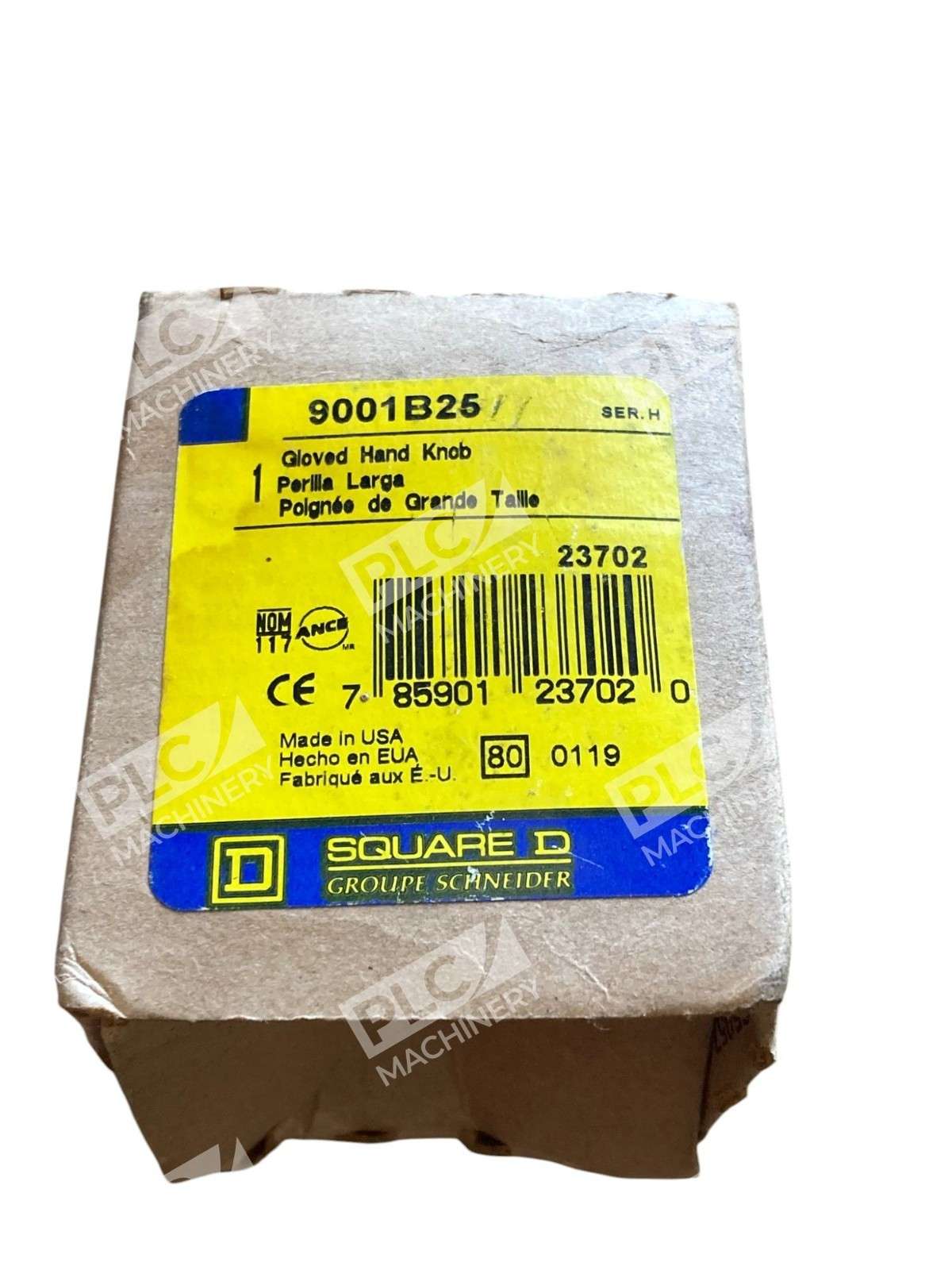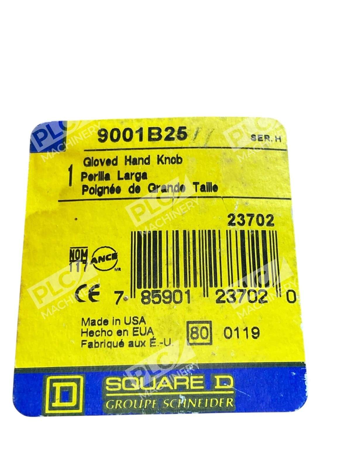 The Square D 9001B25 Gloved Hand Knob is a black colored circuit breaker switch with two poles, designed for on/off operation. This product is part of the electrical equipment and supplies category, specifically geared towards business and industrial use. With the brand name of Square D, it ensures quality and reliability in controlling electrical circuits. The gloved hand knob provides a unique and distinctive feature that sets it apart from other circuit breakers, making it a practical and efficient choice for various industrial applications.