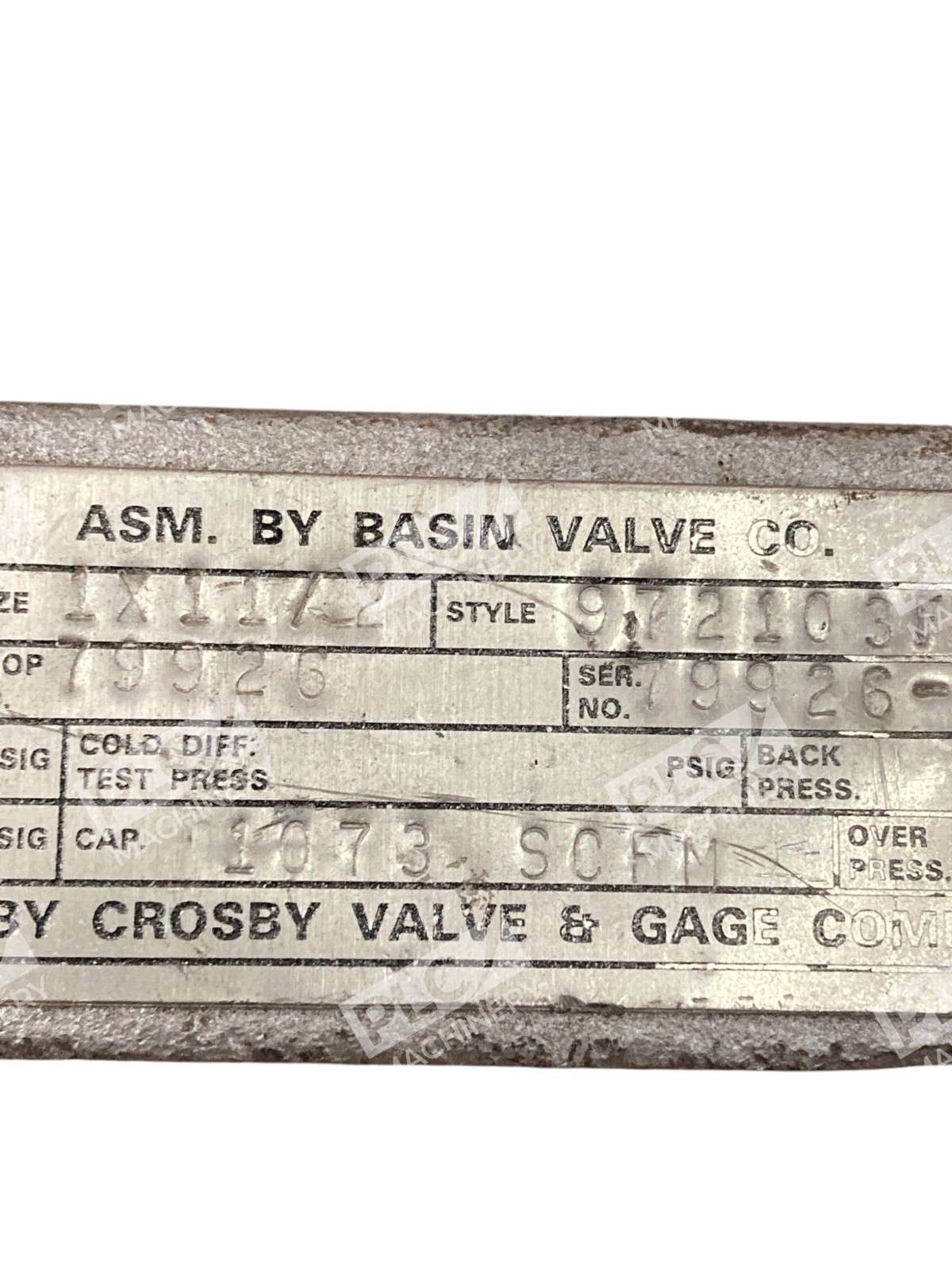Crosby 972103FA Relief Valve The Crosby 972103FA Relief Valve is a high-quality pressure relief device engineered to provide reliable overpressure protection in various industrial applications. Designed with precision, this valve ensures safety and efficiency in systems requiring precise pressure management. Key Features Size and Configuration: The valve features a 1-inch inlet and a 1.5-inch outlet, accommodating standard piping systems and facilitating seamless integration into existing setups. Set Pressure: Engineered to operate at a set pressure of 70 psig, the 972103FA effectively manages system pressure, preventing potential overpressure scenarios. Flow Capacity: With a capacity of 48.3 gallons per minute (GPM), this relief valve efficiently handles substantial flow rates, ensuring optimal performance under varying conditions. Material Construction: Constructed with durable materials, the valve offers longevity and resistance to corrosion, making it suitable for demanding industrial environments. Design Compliance: The 972103FA adheres to industry standards, ensuring compatibility and reliability in pressure relief applications. Applications The Crosby 972103FA Relief Valve is ideal for use in sectors such as chemical processing, oil and gas, power generation, and other industries where precise pressure control is critical. Its robust design and reliable performance make it a preferred choice for safeguarding equipment and personnel from overpressure conditions. Maintenance and Warranty Regular maintenance is recommended to ensure the valve’s optimal performance and longevity. While factory warranties may vary, many suppliers offer additional warranties to provide customers with peace of mind regarding their investment. For detailed specifications and operational guidelines, consulting the manufacturer’s documentation or reaching out to authorized distributors is advisable to ensure proper selection and application of the Crosby 972103FA Relief Valve in your system.