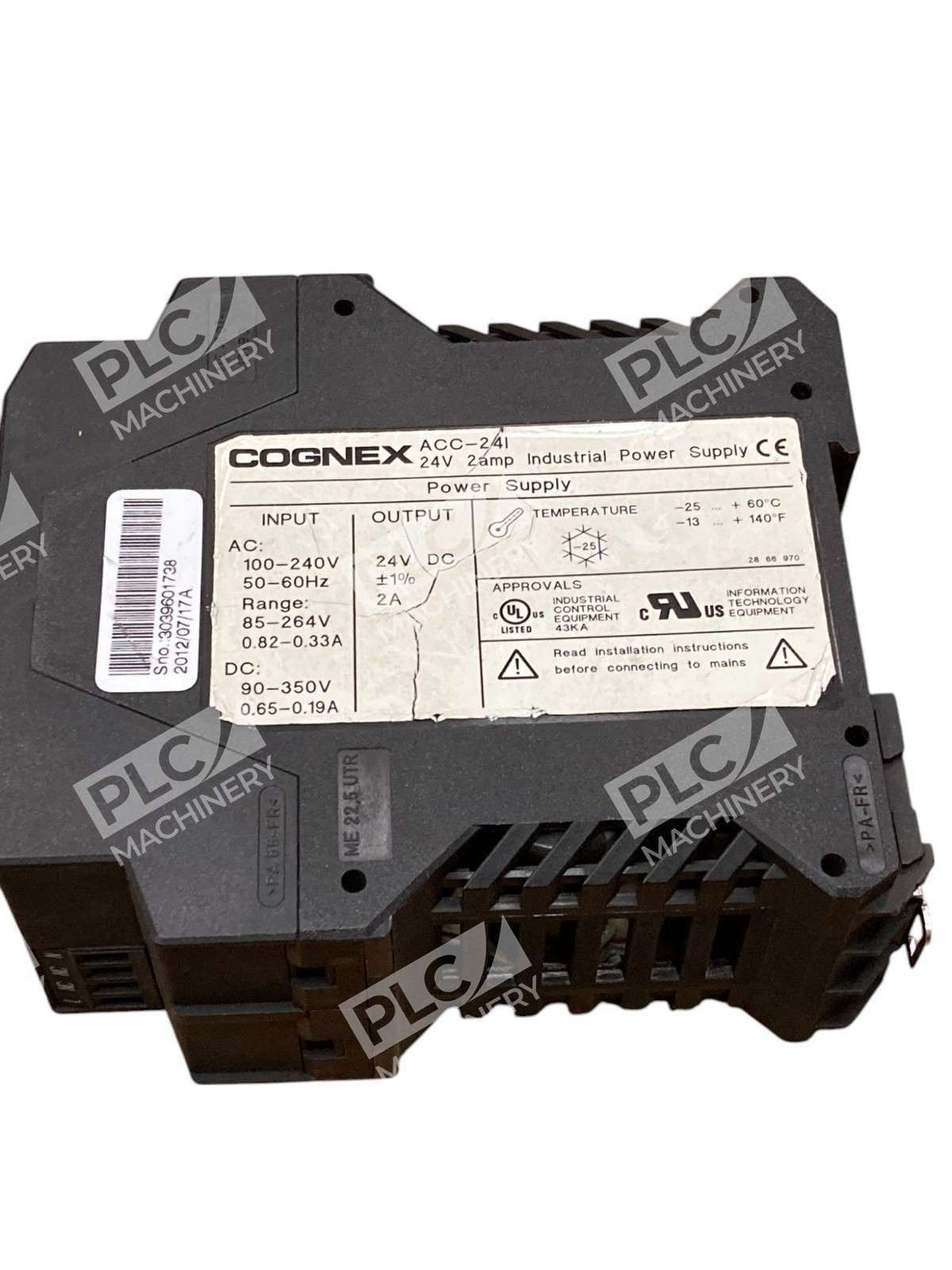 The Cognex ACC-24I is a robust 24V DC, 2A power supply engineered to deliver consistent and reliable power for industrial applications, particularly those involving Cognex machine vision systems. Key Features Wide Input Voltage Range: Accommodates AC inputs from 85 to 264V and DC inputs from 90 to 350V, ensuring versatility across various industrial settings. ([partner.cognex.com](https://partner.cognex.com/Root/Specifications/ACC-24I.pdf.xsd?utm_source=openai)) Stable Output: Provides a steady 24V DC output at 2A, suitable for powering devices like the In-Sight 2000 Series Vision Sensor. ([support.cognex.com](https://support.cognex.com/docs/is_574/ISE/EN/Manuals/is2000inst.pdf?utm_source=openai)) Compact Design: Features a narrow, DIN rail-mountable form factor, facilitating easy integration into control panels and enclosures. ([partner.cognex.com](https://partner.cognex.com/Root/Specifications/ACC-24I.pdf.xsd?utm_source=openai)) Durable Construction: Built to withstand operating temperatures ranging from -25°C to +60°C, making it suitable for demanding industrial environments. ([partner.cognex.com](https://partner.cognex.com/Root/Specifications/ACC-24I.pdf.xsd?utm_source=openai)) Protective Features: Equipped with overvoltage and undervoltage protection to safeguard connected equipment. ([partner.cognex.com](https://partner.cognex.com/Root/Specifications/ACC-24I.pdf.xsd?utm_source=openai)) Applications The ACC-24I power supply is ideal for powering Cognex’s In-Sight 2000 Series Vision Sensors and other compatible devices, ensuring optimal performance in machine vision applications. ([support.cognex.com](https://support.cognex.com/docs/is_574/ISE/EN/Manuals/is2000inst.pdf?utm_source=openai)) Specifications Input Voltage: 85264V AC or 90350V DC Output Voltage: 24V DC Output Current: 2A Operating Temperature: -25°C to +60°C Mounting: DIN rail In summary, the Cognex ACC-24I power supply offers a reliable and efficient solution for delivering stable 24V DC power in industrial environments, particularly for applications involving Cognex vision systems.
