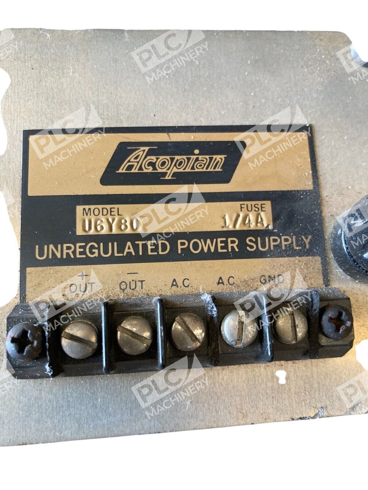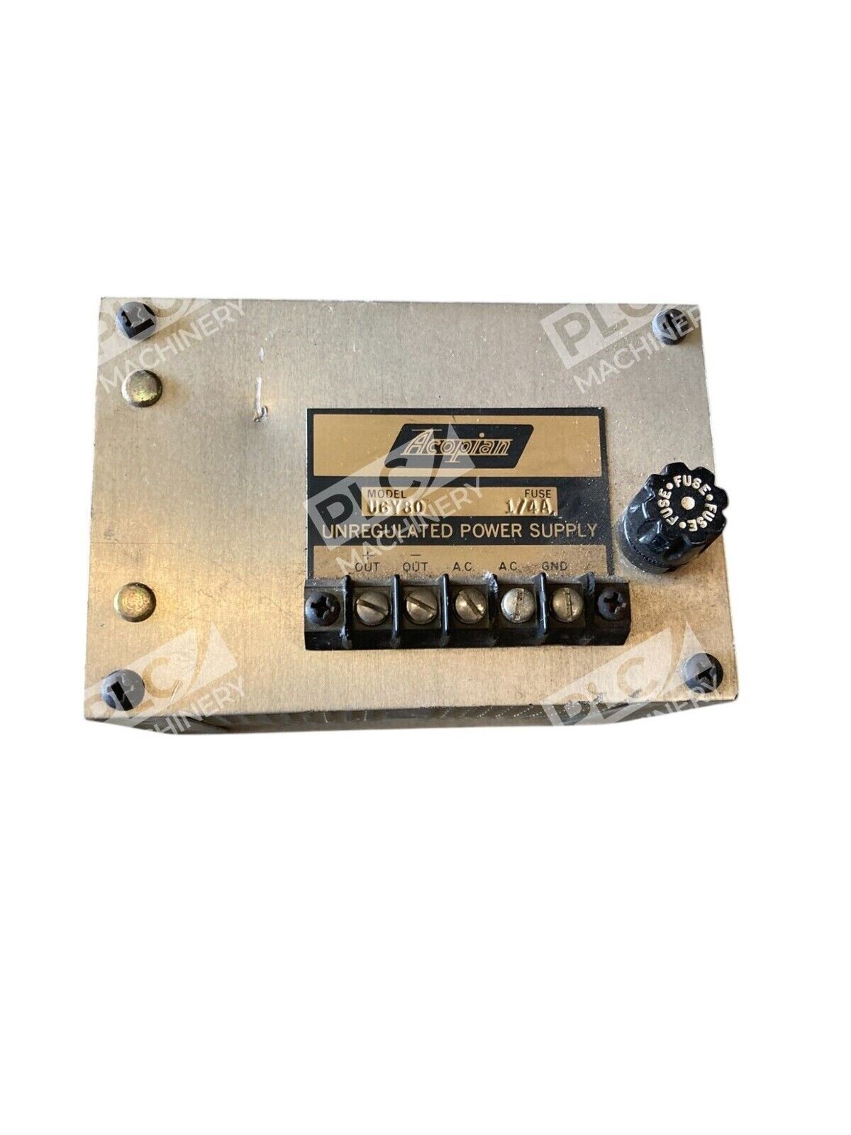 This is an Acopian 1/4A unregulated power supply model U6Y80. It is manufactured by Acopian, a brand specializing in power supplies. This product is designed to provide power in switching mode, making it suitable for industrial and electrical applications.
