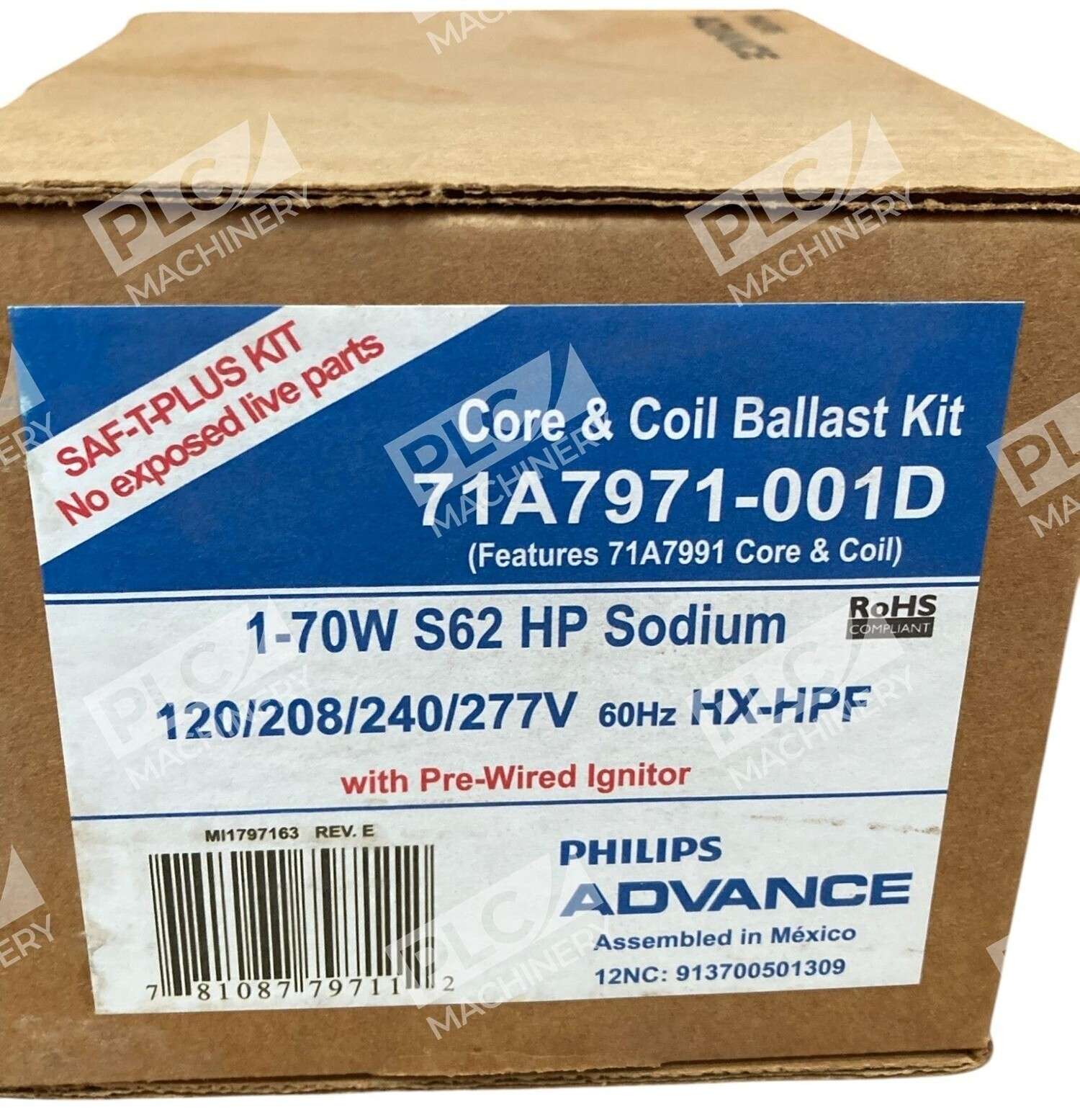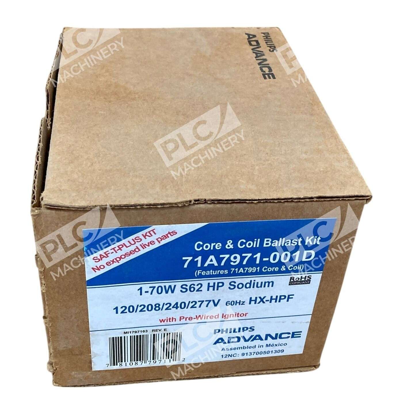 The Advance Philips 1-70W S62 HX-HPF HP Sodium Core & Coil Ballast 71A7971-001D is a high-quality magnetic HID ballast kit designed for facility lighting maintenance and safety. With a pulse start type and ANSI certification, this unit is manufactured in Mexico by the trusted brand Advance. This ballast is a vital component for ensuring efficient and reliable illumination in various industrial and commercial settings.