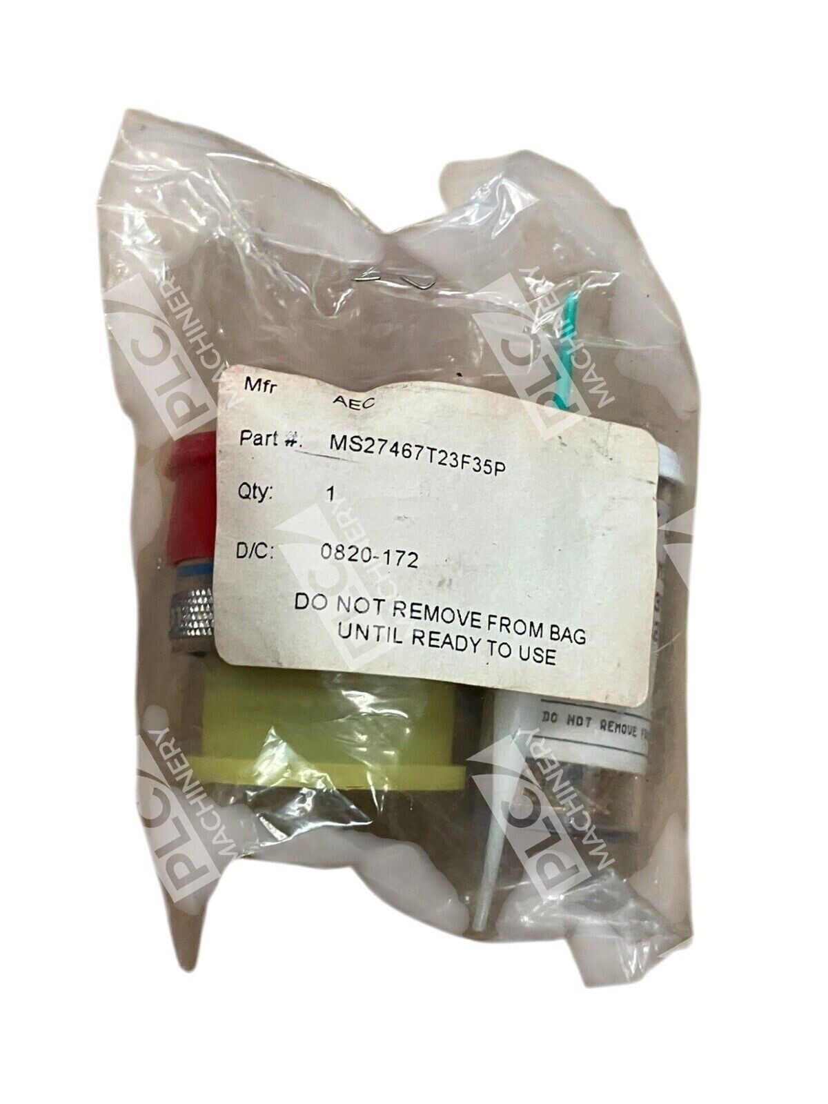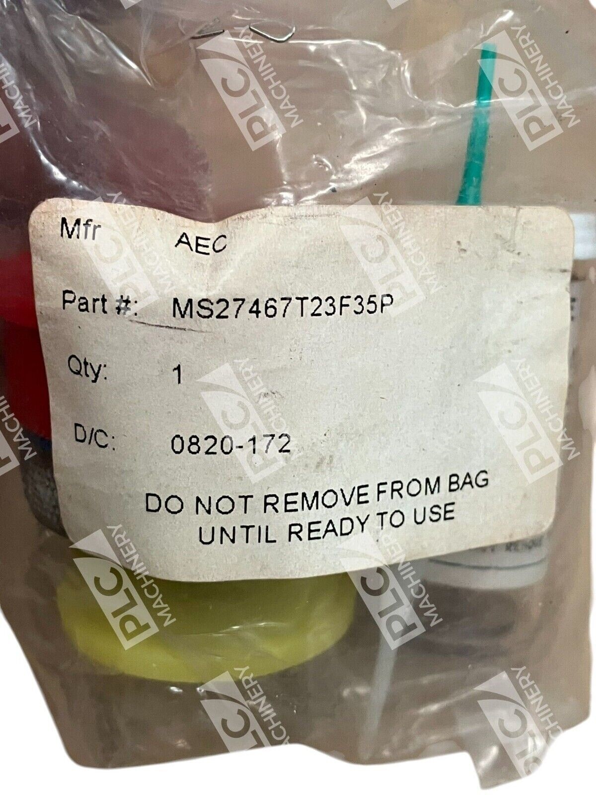 The product is a Bendix circular connector with the part number AEC 0820-172 DJT 100C. It is a 100-pin plug with #22D pins, specifically the MS27467T23F35P model.
