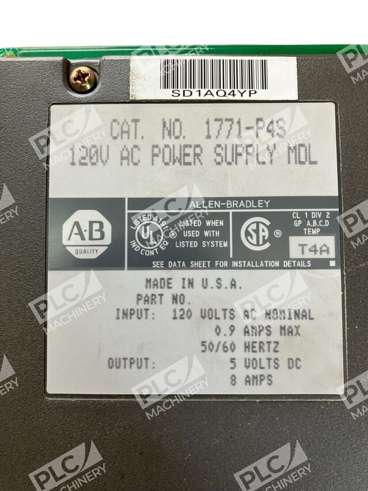 This Allen Bradley 1771-P4S power supply module is the perfect addition to your industrial automation setup. With a voltage capacity of 120V AC and a reliable brand like Allen Bradley, you can be sure that this product will meet your needs. The module is pre-owned, so it has already proven its durability and quality.