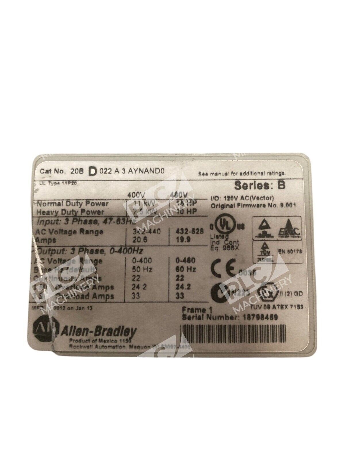 The Allen-Bradley / Rockwell Automation Powerflex 700 AC Drive, model 20BD052A3AYNAND0 from series B, is a part of the General Purpose AC Drives category. It is a reliable industrial automation solution for drives and motor controls, commonly used in various applications within the Business & Industrial sector.