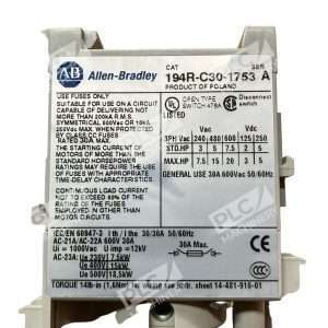 This Allen Bradley 194R-C30-1753 /A switch disconnector is a top-quality item for your electrical equipment needs. With a voltage (AC) of 600 V-AC and a current of 30 A AMP, this switch is reliable and efficient. Its 3P poles and product brand of Allen Bradley ensure that it is a trustworthy choice for your industrial needs.