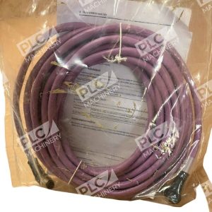 This cable is designed to connect Allen Bradley Kinetix 6000M Network drives and amplifiers. It is manufactured in the United States by Allen Bradley. The cable has the model number 2090-XXNFMF-S05 and is compatible with Series A servo feedback systems. It is in shelf C-4 and is sold as is.