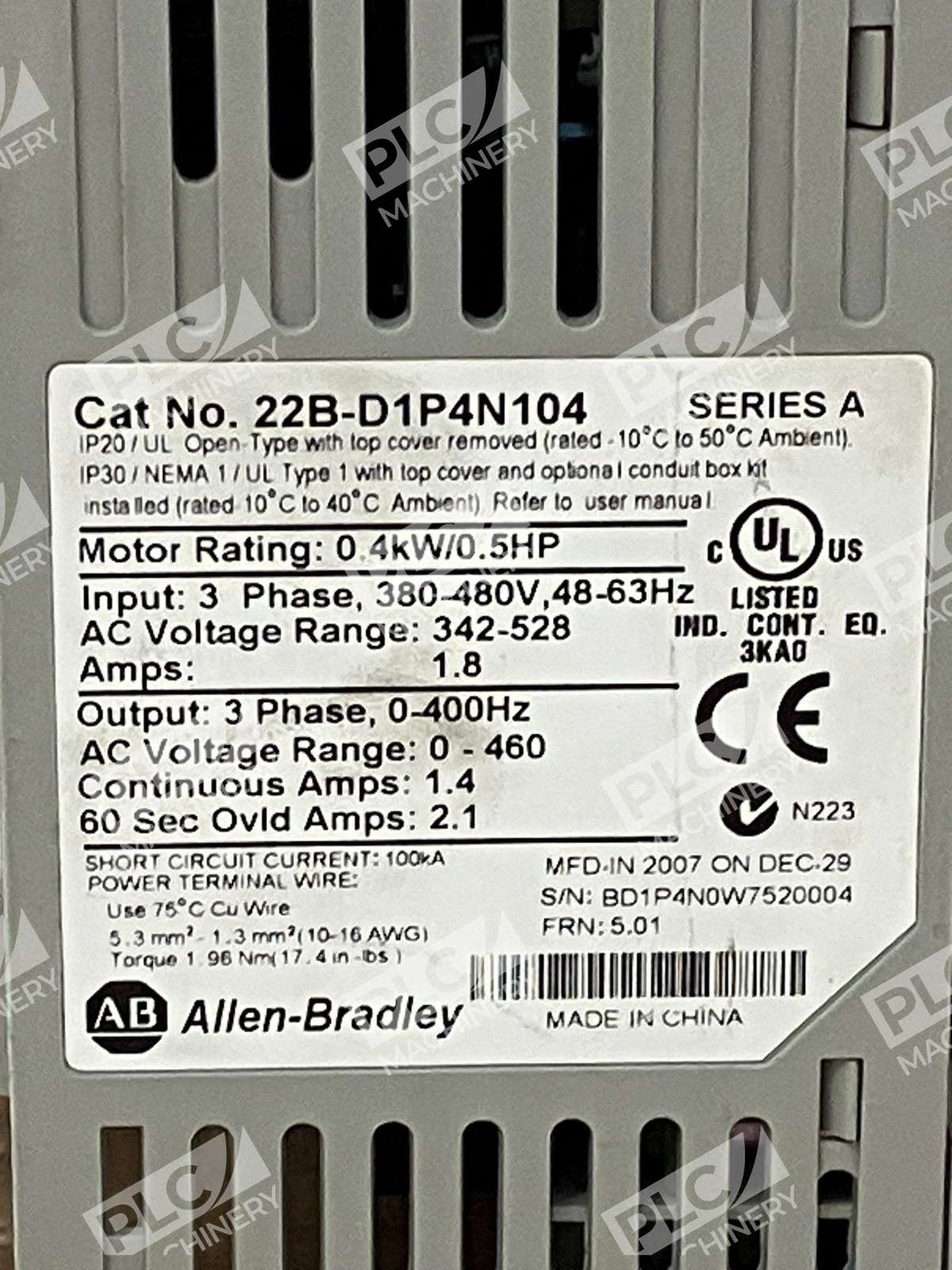 Allen-Bradley 22B-D1P4N104 Series A PowerFlex 40 AC Drive 380-480V AC