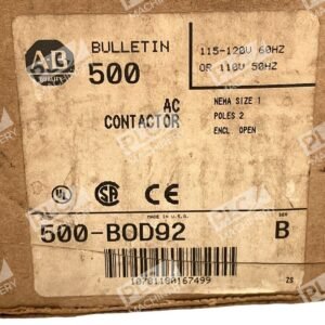 The Allen-Bradley 500-BOD92/B is a NEMA Size 1 feed-through lighting contactor designed for efficient control of lighting and non-motor loads.