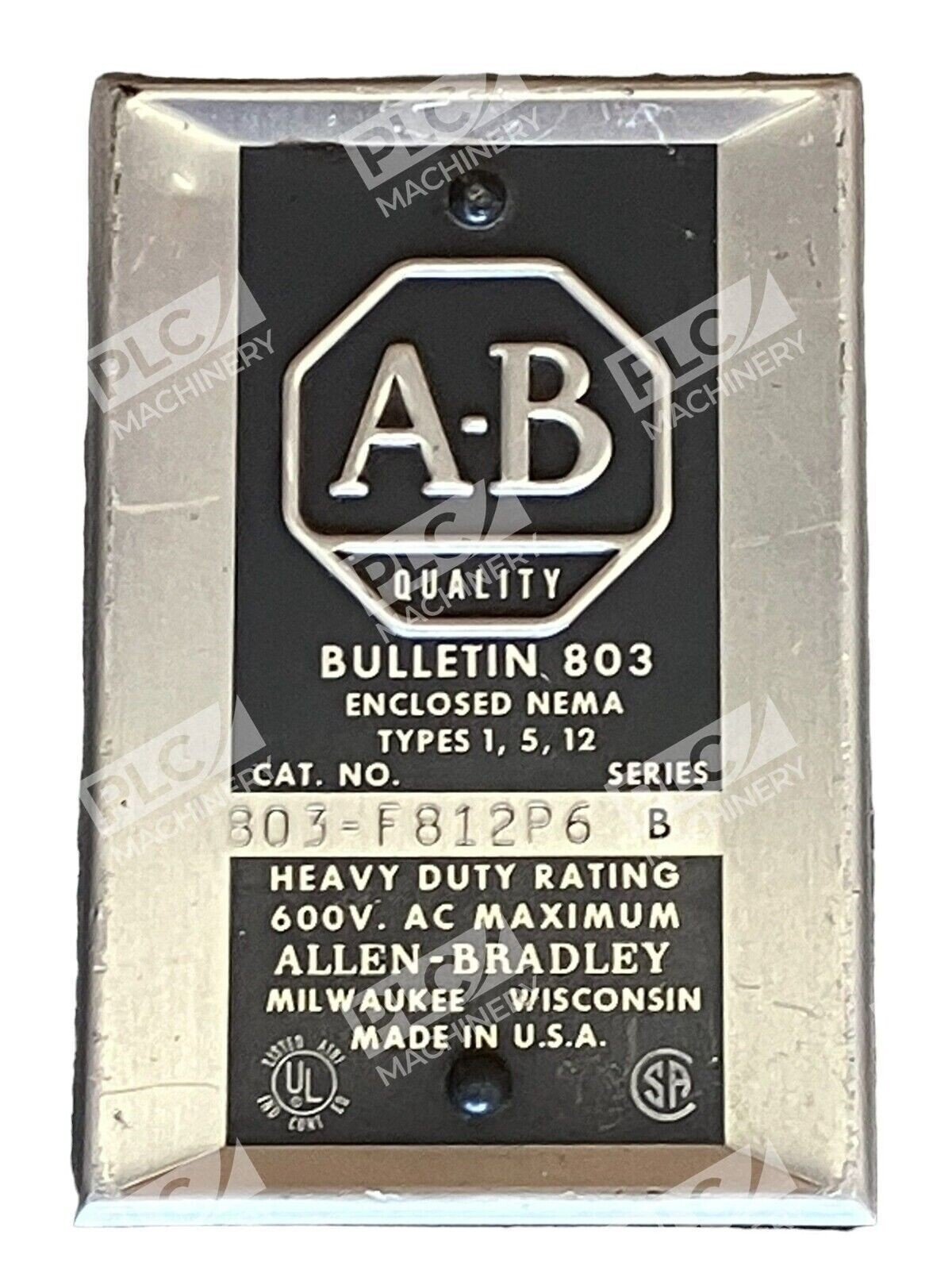 Allen Bradley 803-F812P6 /B Heavy Duty Rating 600V AC Maximum