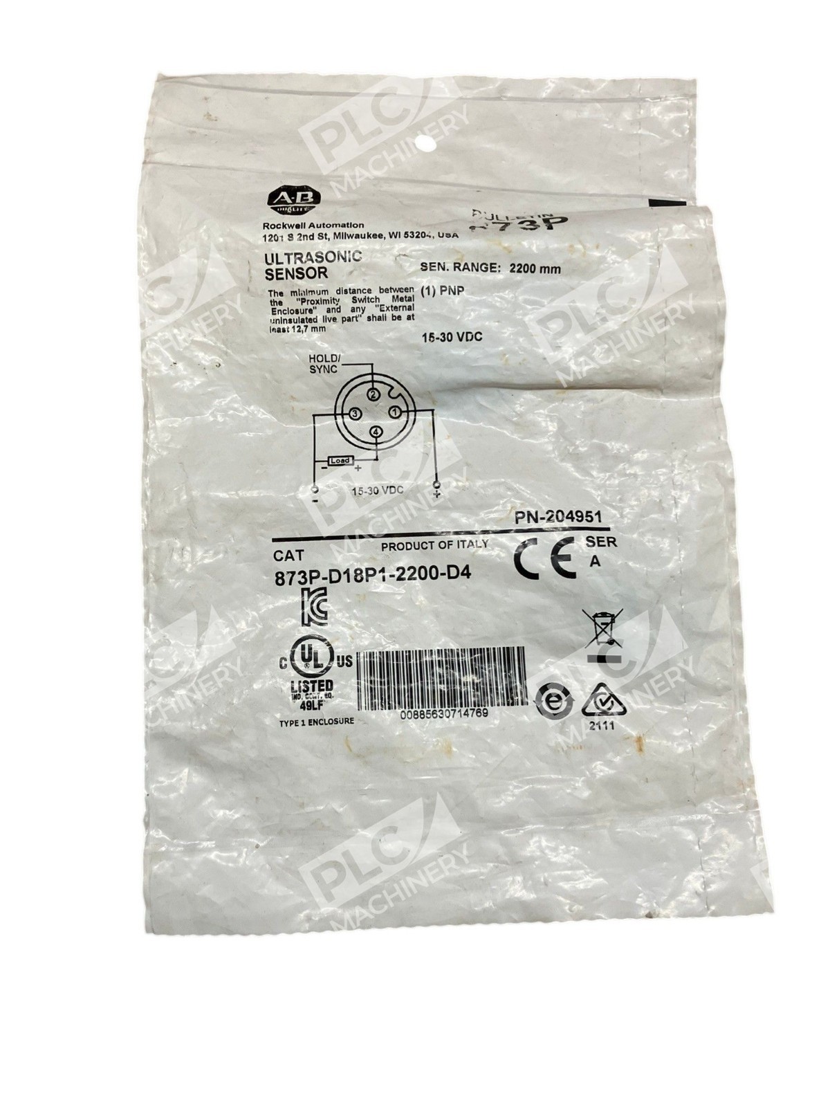 Allen-Bradley 873P-D18P1-2200-D4 /A Ultrasonic Proximity Sensor 15–30V DC