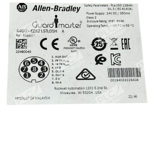 The Allen Bradley AB 548347 Guardmaster 440G-EZS21STL05H /A is a control unit designed by Industrial MRO. It is a specialized PLC processor designed for industrial automation and motion control systems. This product is part of the Guardmaster line by Allen Bradley, known for its reliability and performance in various industrial applications. It is a key component for ensuring efficient control and operation in complex machinery and equipment.