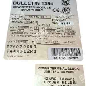 Be the first to review “Allen Bradley AB 5KW System Module IMC-S Turbo 1394-SJT05-T /A”