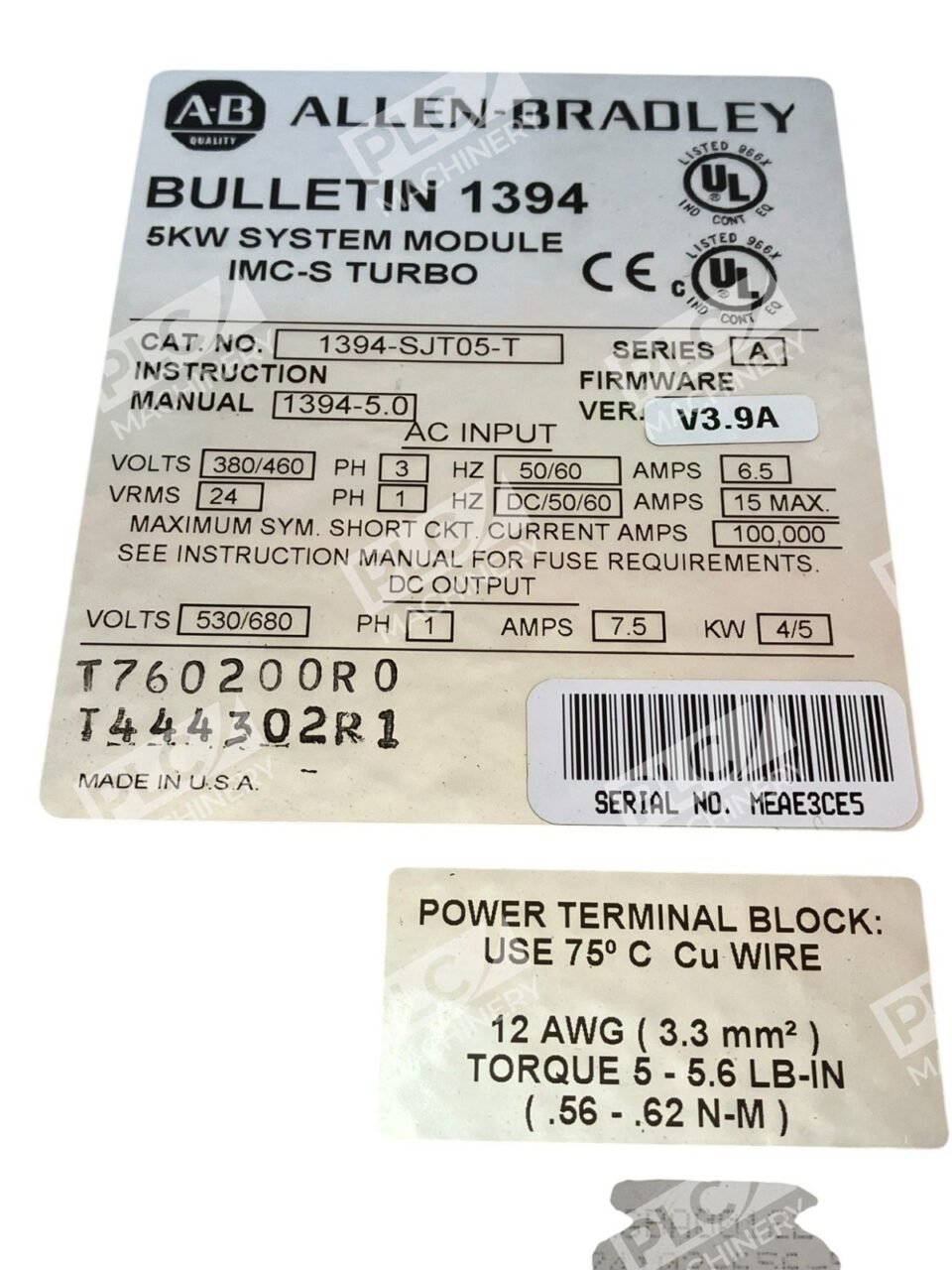 Allen Bradley AB 5KW System Module IMC-S Turbo 1394-SJT05-T /A