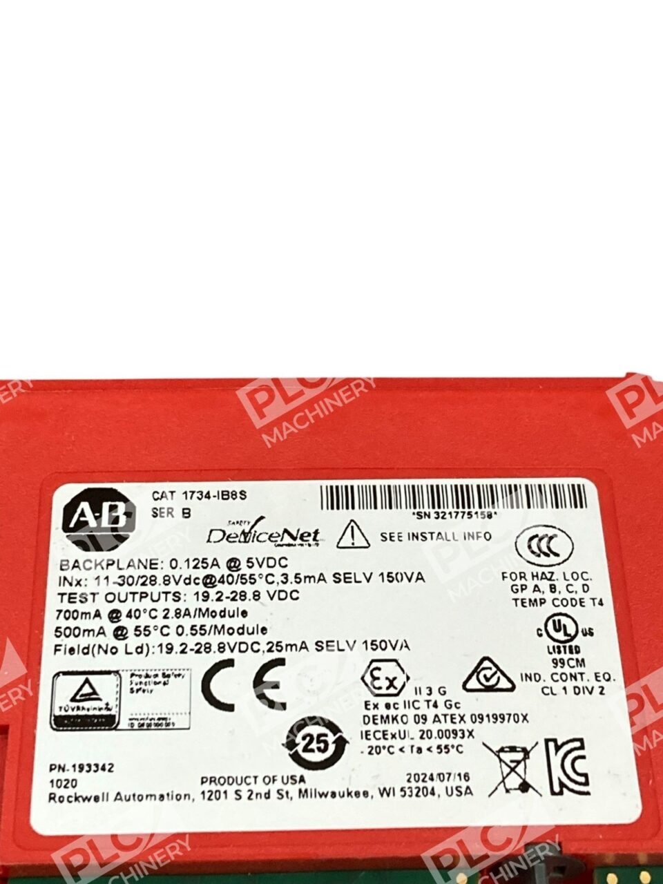 The Allen-Bradley 1734-IB8S is an 8-channel safety-rated digital input module designed for POINT I/O systems, operating at 24V DC sinking input. It supports CIP Safety over EtherNet/IP, making it ideal for distributed and safety-critical automation systems. The module is TÜV certified for SIL 3 and PLe functional safety standards.