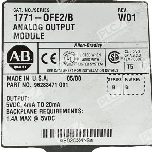The Allen Bradley AB 96283471 G01 Analog Output Module 1771-OFE2 /B is a specific module designed for use with PLC 5 controllers. It provides analog output capabilities for controlled motion or real-time data processing in industrial automation settings. With the trusted Allen Bradley brand and compatibility with the 1771OFE2 model, this module offers reliable and efficient performance in various industrial applications.
