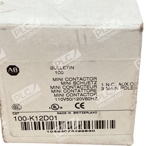 The Allen Bradley AB Bulletin 100 3 Pole Mini Contactor 100-K12D01 is a high-quality motor control product manufactured in Switzerland by Allen Bradley. This reliable and durable mini contactor is designed for industrial automation and motion control applications, making it a crucial component for various business and industrial settings. With its 3 pole configuration and compact design, this contactor offers efficient and precise control for motor-driven systems, ensuring optimal performance and safety in a wide range of automation processes.