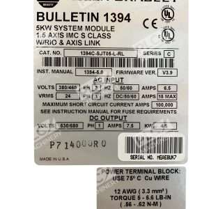 Allen Bradley AB Bulletin 1394 5KW System Module 1394C-SJT05-L-RL /C